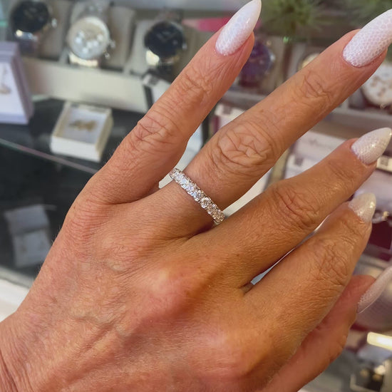 18ct Gold eternity or wedding ring set with ten 3.00mm round brilliant cut Lab Grown diamonds. Half set shank. 1.03ct in total, FVS.