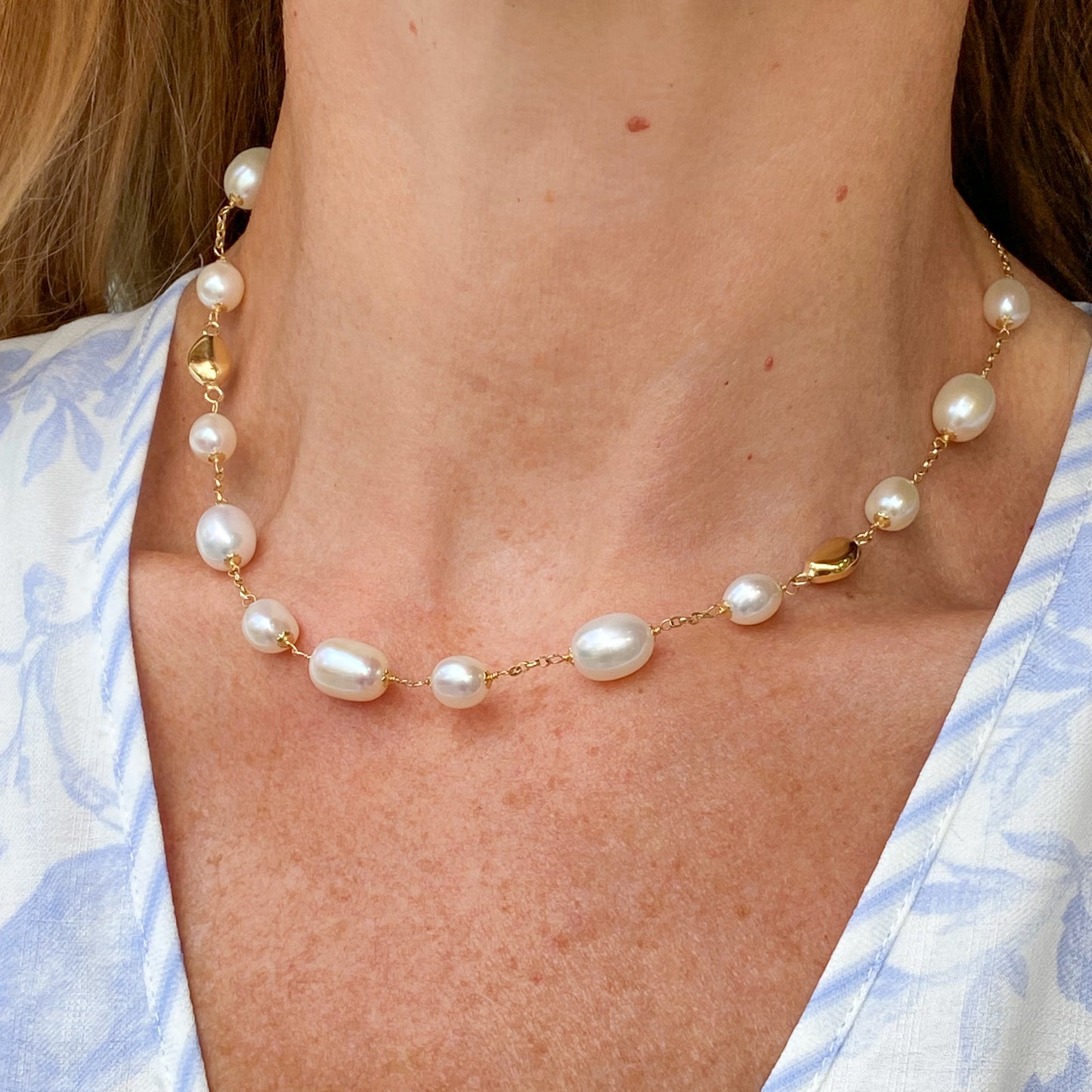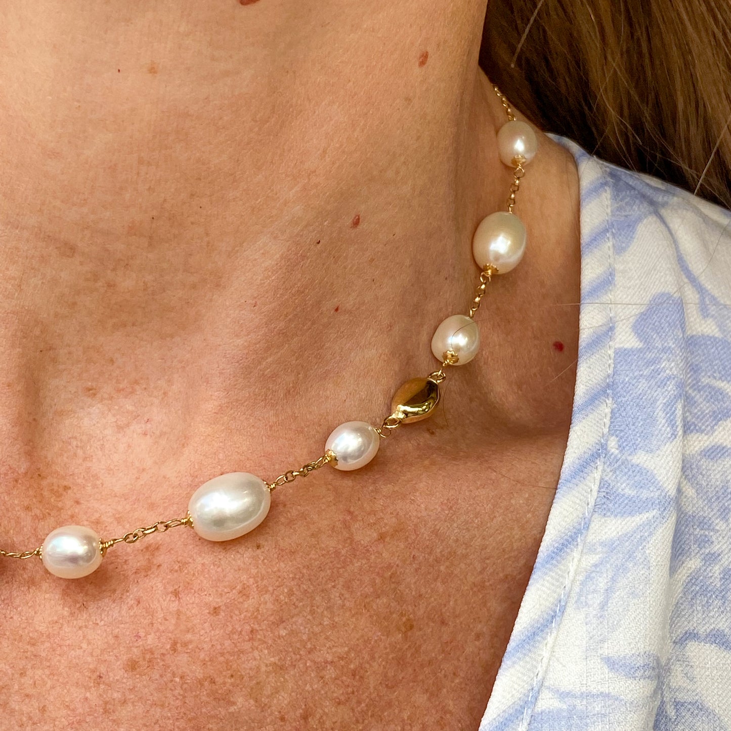 18ct Gold Cultured Freshwater Pearl Chain Necklace