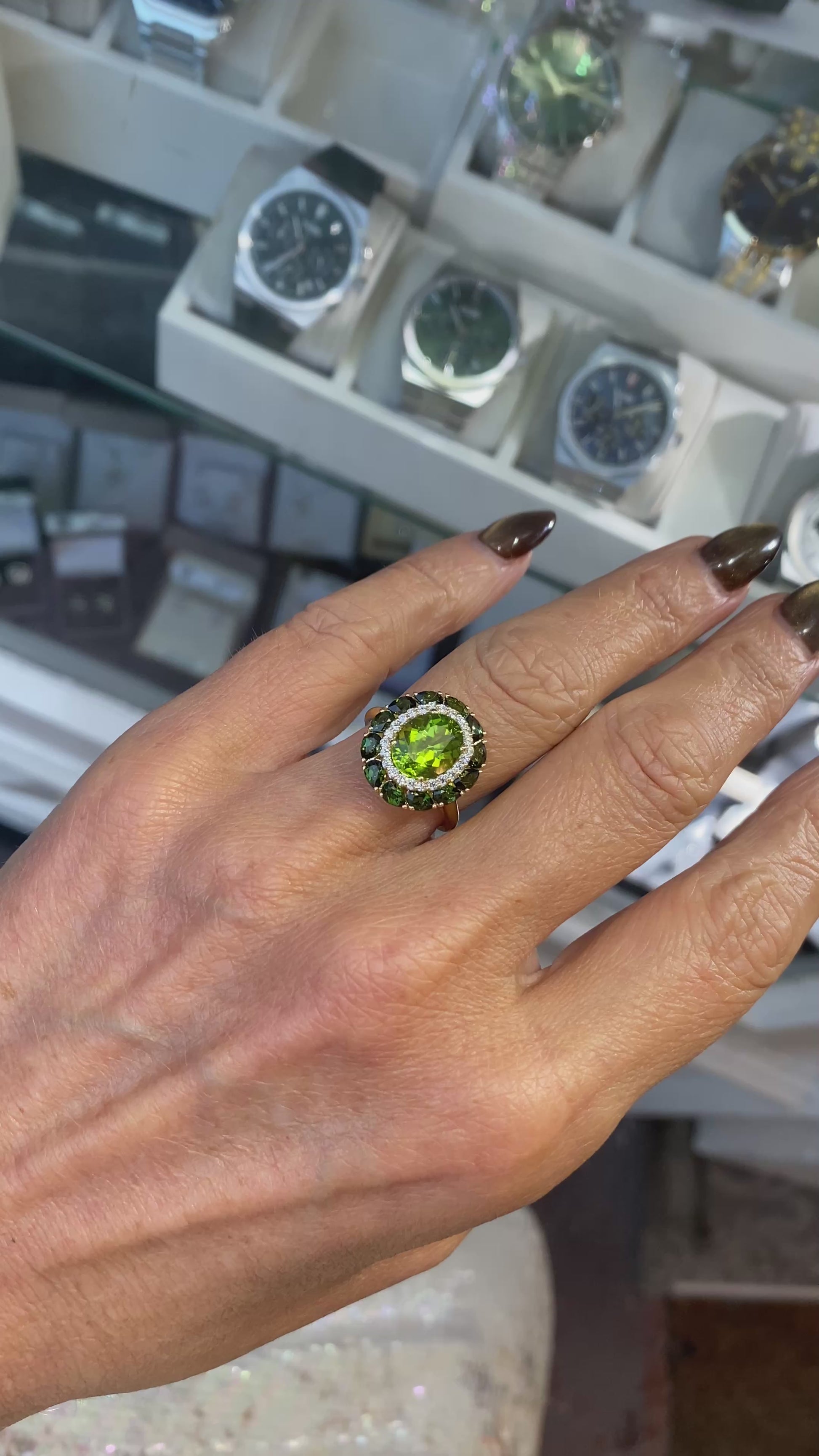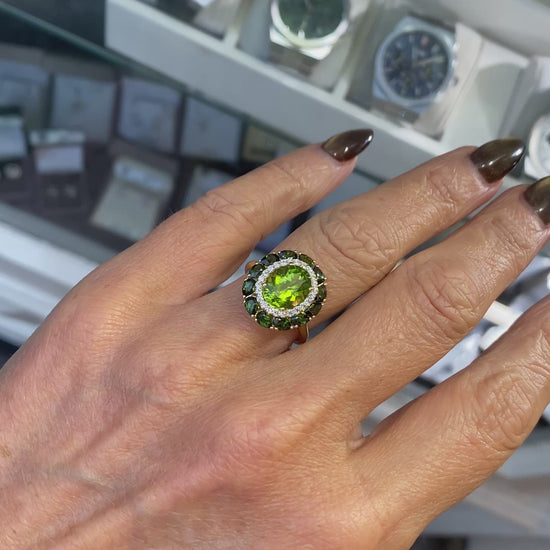18ct Gold Peridot, Green Tourmaline & Diamond Ring