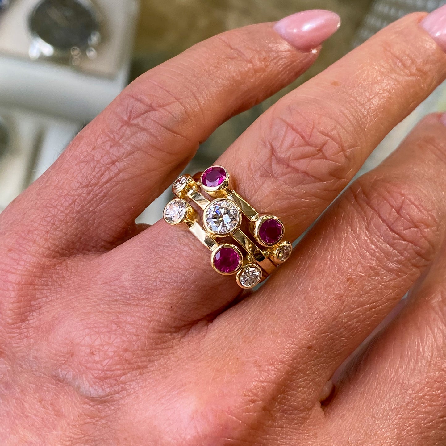 18ct Gold Ruby & Diamond Rainfall Ring