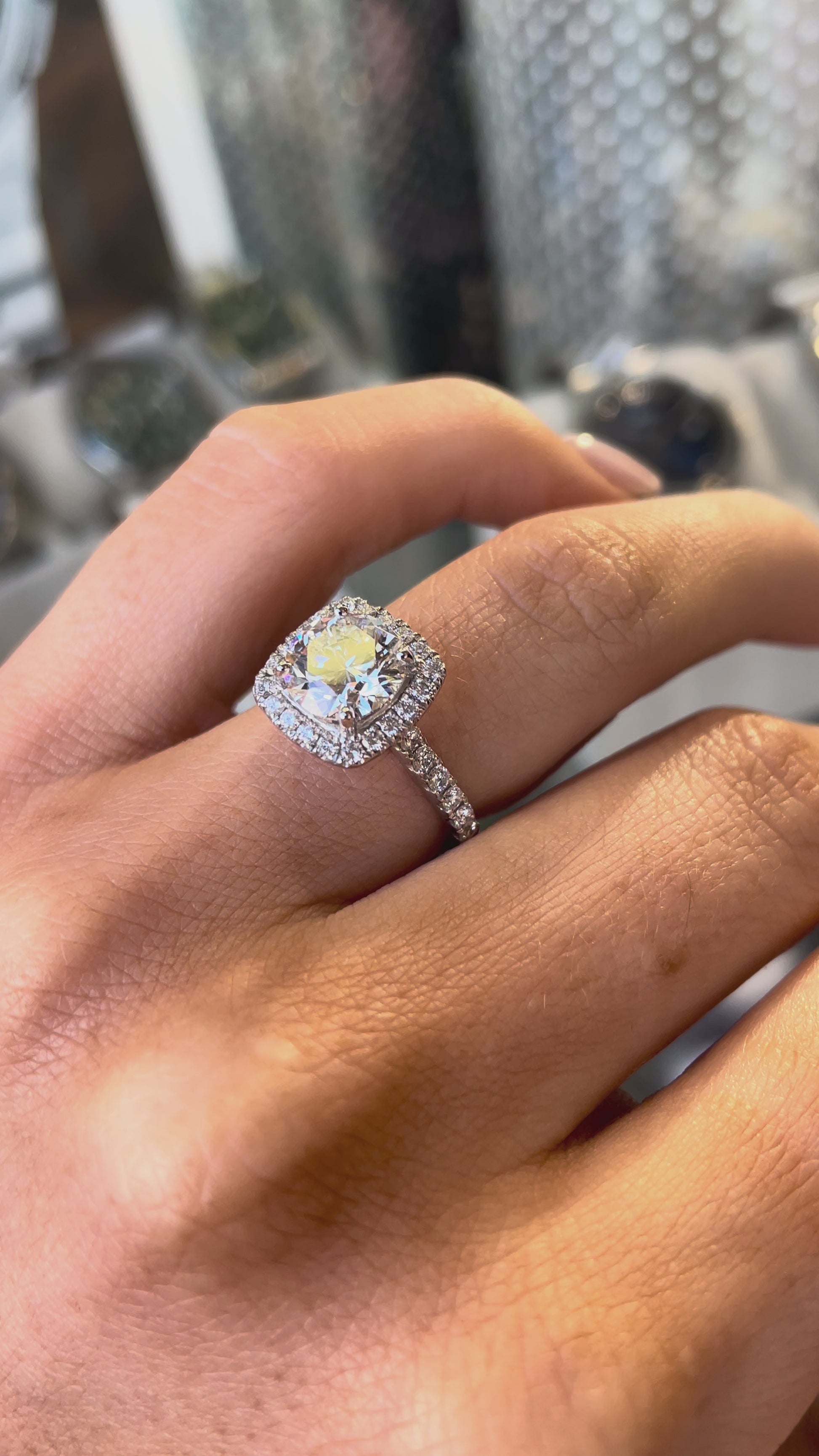 18ct White Gold Solitaire Halo Engagement Ring | Certificated Lab 2.19ct