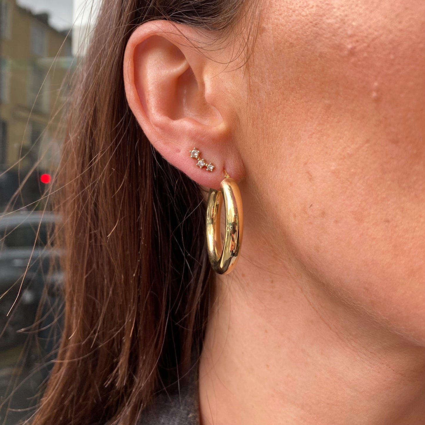 These 9ct yellow gold hoop earrings are super stylish and bang on trend. Wear them with any of our gorgeous new 9ct gold fine necklaces. They are especially nice with a cosy jumper for understated glam on winter days. An absolute must-have. They have a plain polished finish. 20mm diameter.
