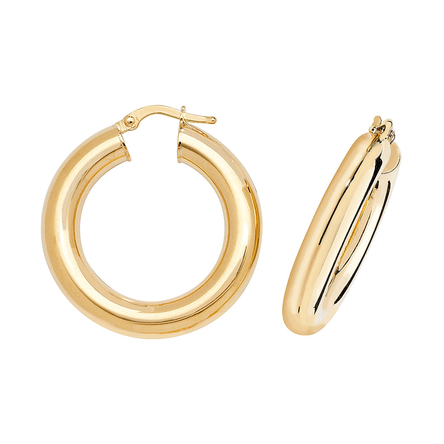 9ct Gold Chunky Tube Hoop Earrings 20mm