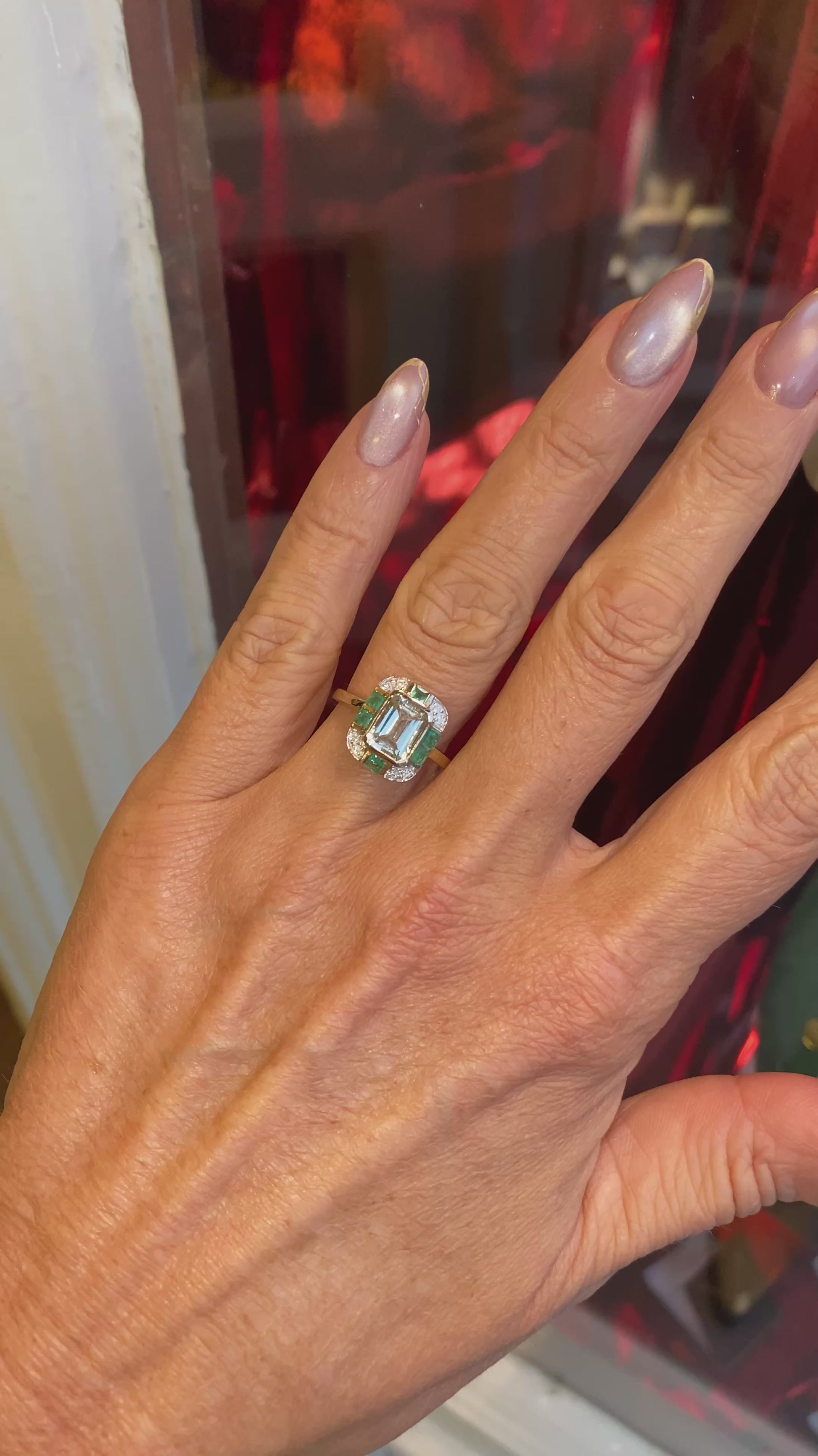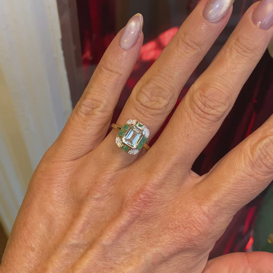 9ct Gold Green Amethyst, Emerald & Diamond Ring