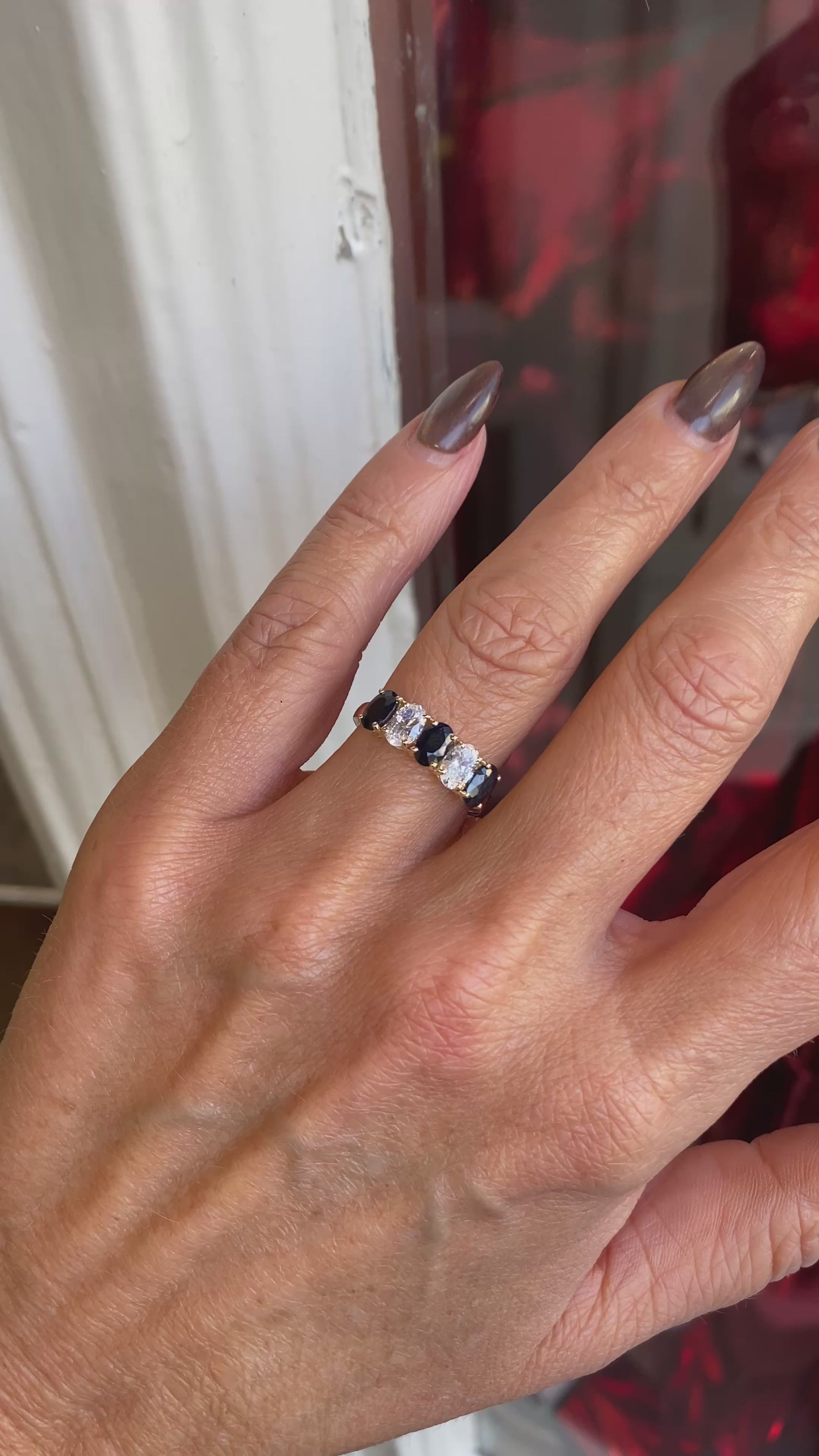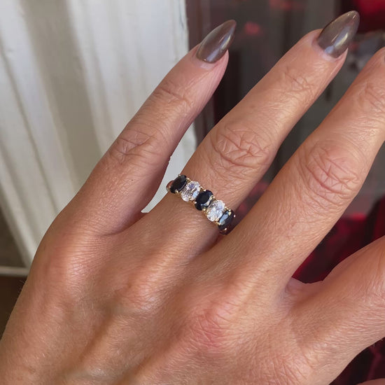 9ct Gold Oval Five Stone Eternity Ring - Sapphire & CZ