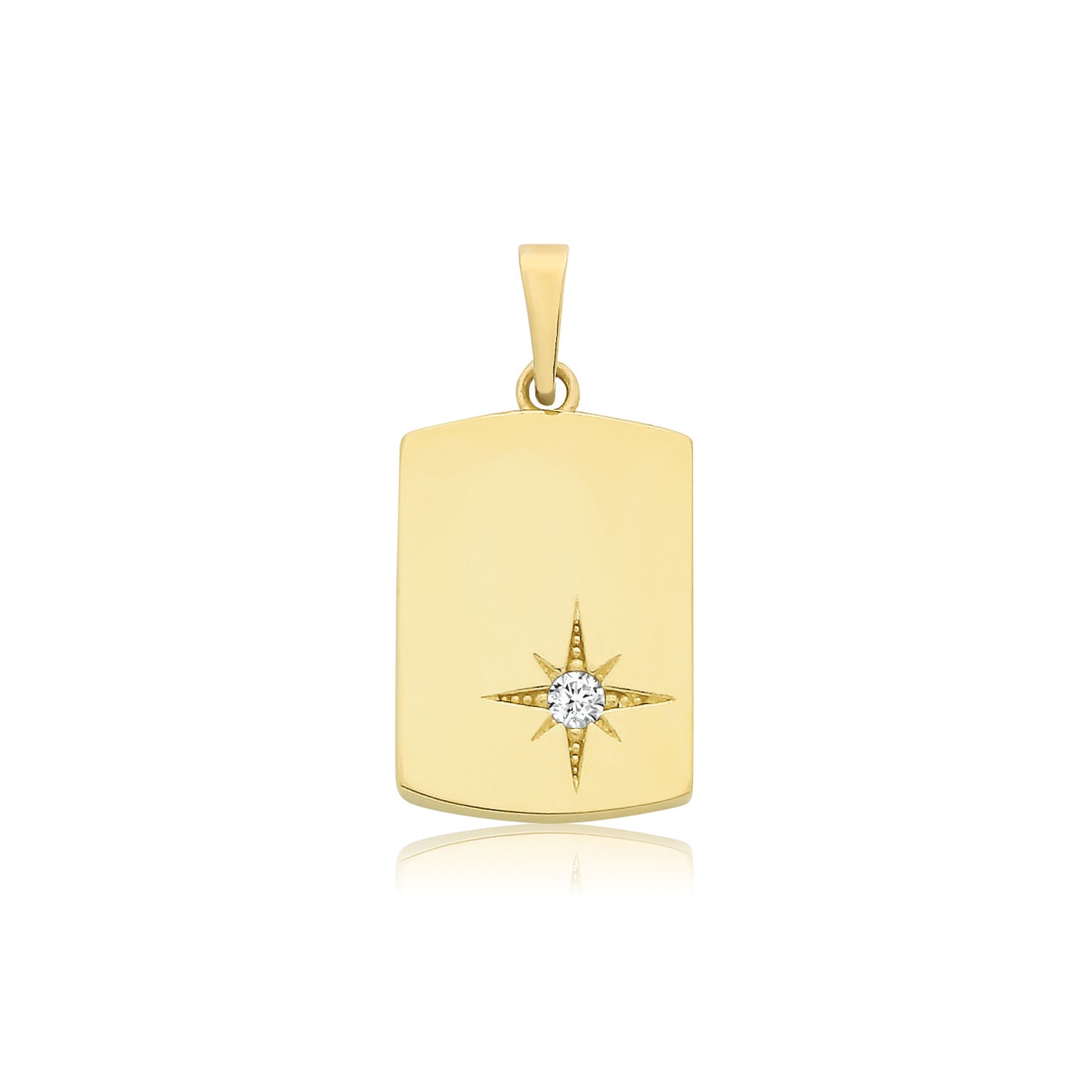 9ct Gold Star Set CZ Tonneau Disc Necklace