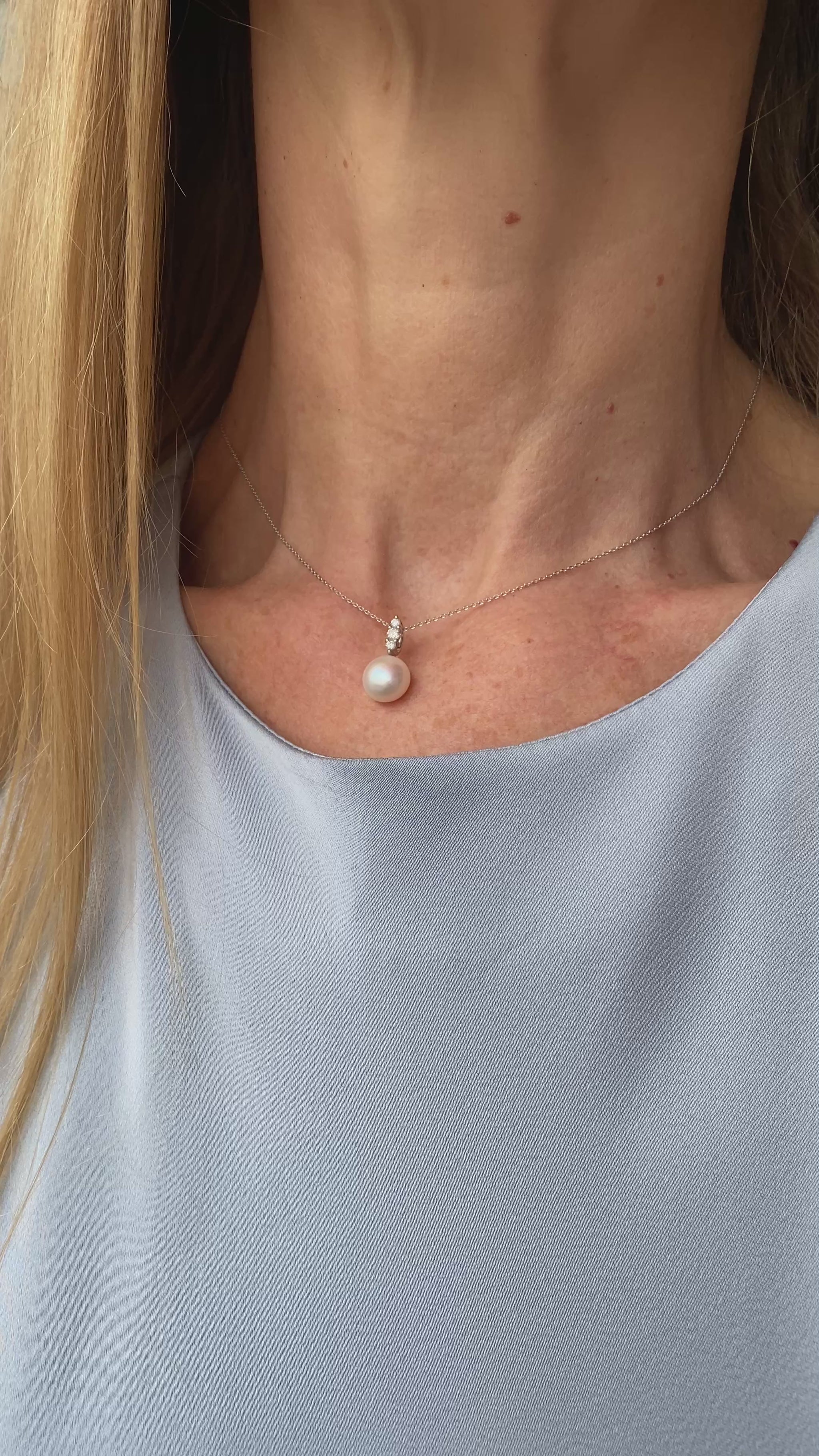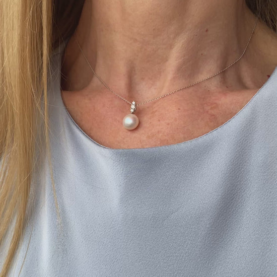 9ct White Gold Freshwater Pearl & CZ Pendant Necklace