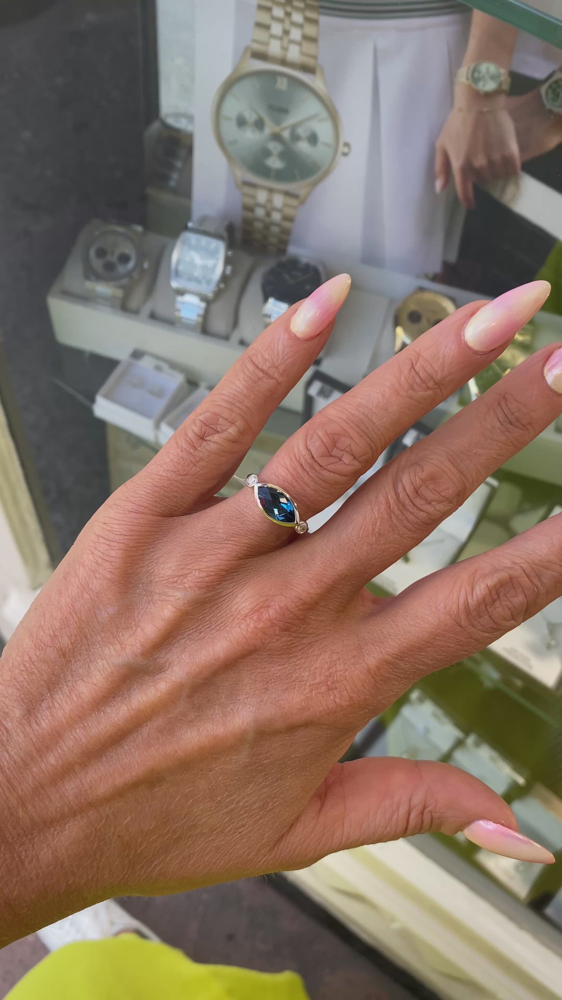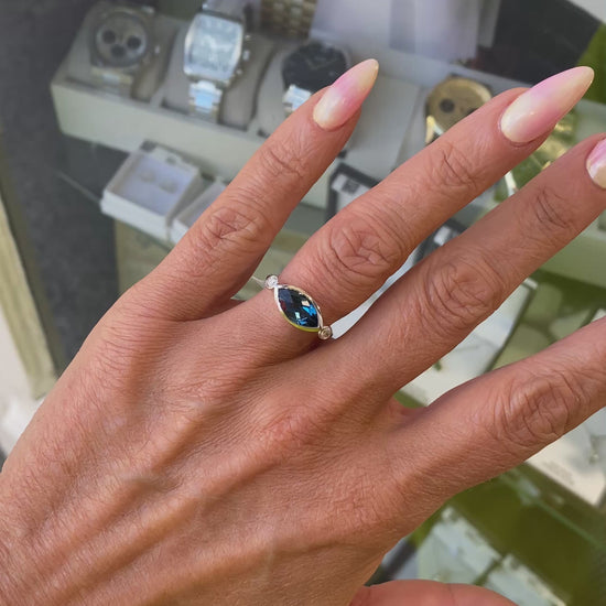 9ct White Gold Marquise Cut London Blue Topaz & Diamond Ring