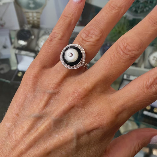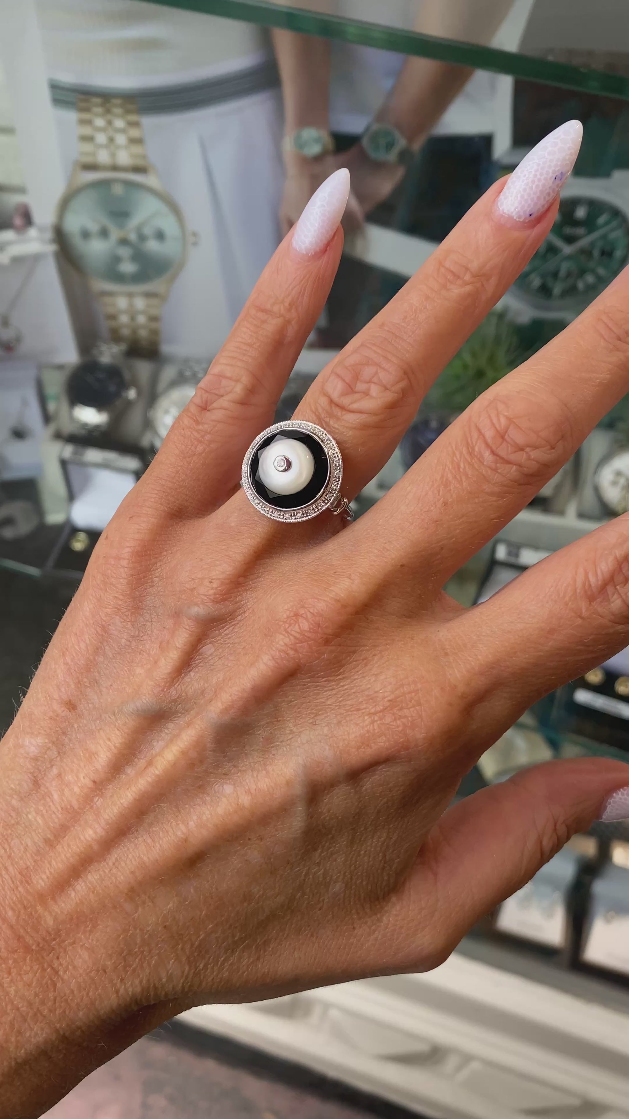 9ct White Gold Mother of Pearl, Onyx & Diamond Ring