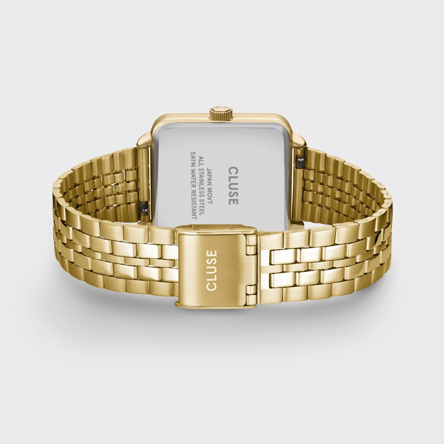 Bring a sense of luxury and sophistication to your everyday wardrobe with the La Tétragone Multifunction watch for women. Featuring a 30 mm square gold coloured case, 5-link strap, white dial and 3 sub dials to keep track of the day and time. Easily customise the look of your watch with any 16 mm strap. You can adjust the strap size by yourself.