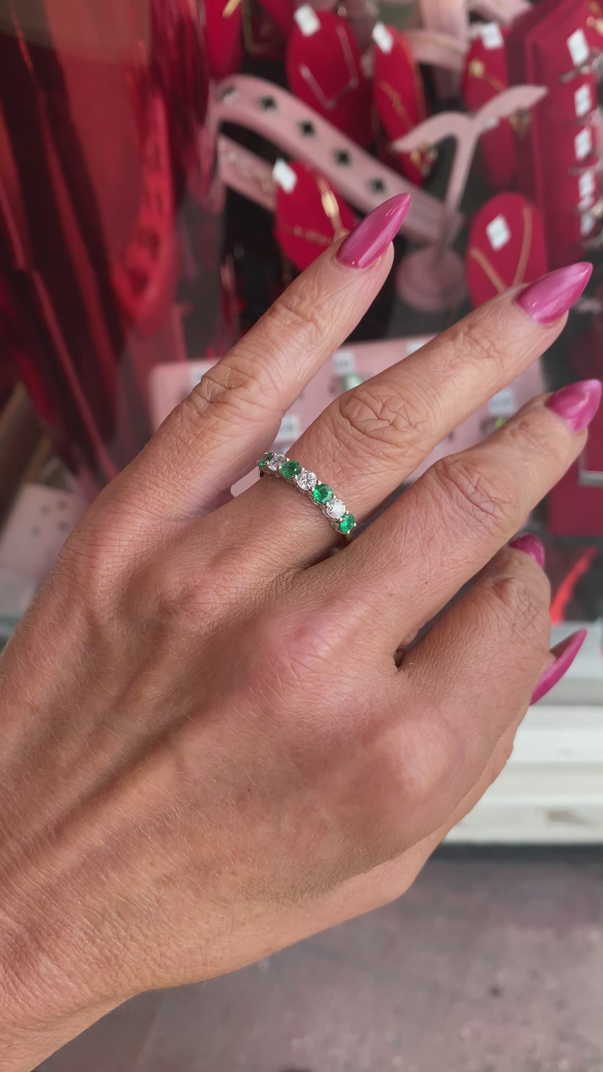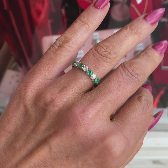 18ct Gold Seven Stone Emerald & Diamond Eternity Ring