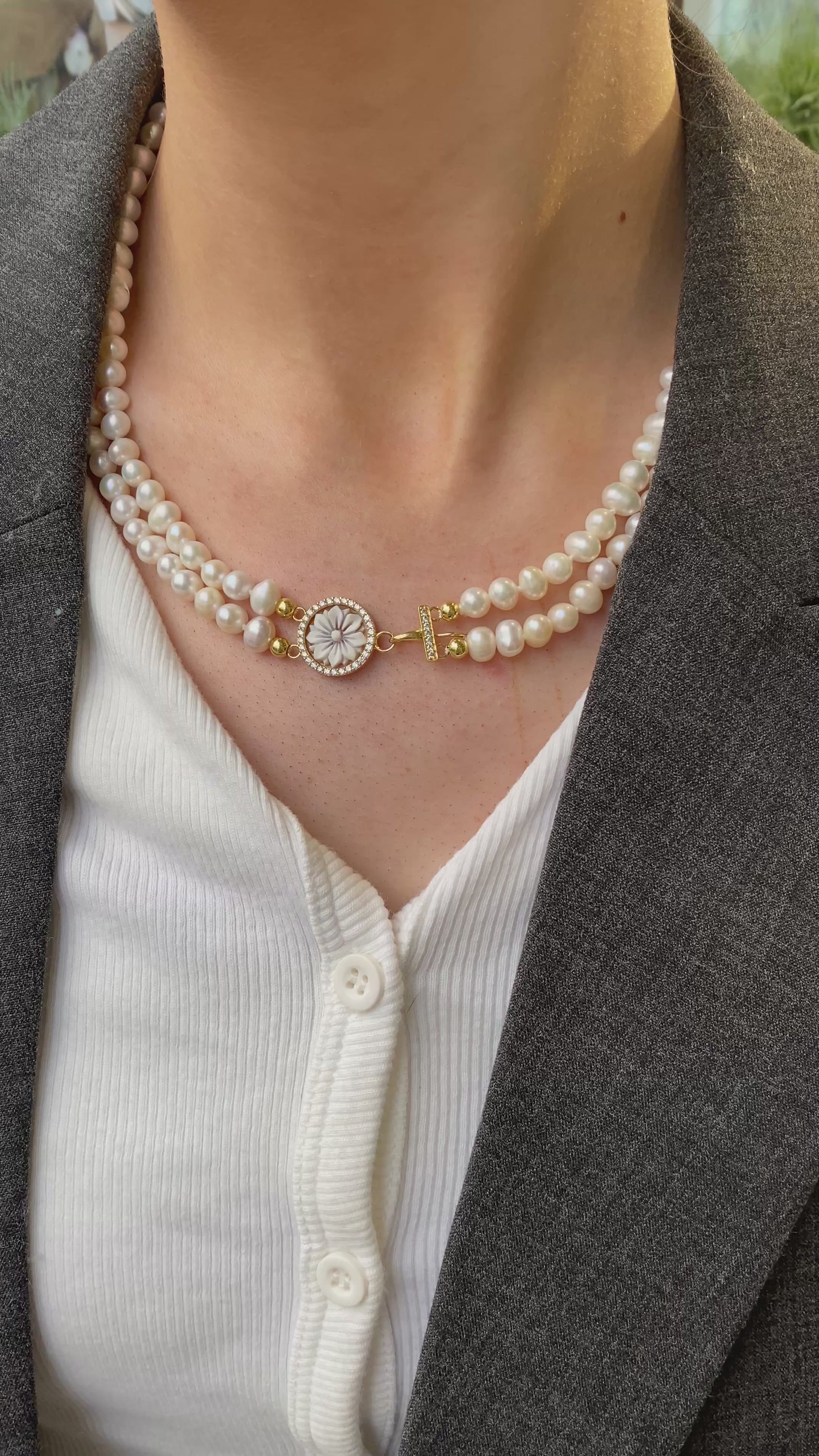 Floral Cameo & Freshwater Pearl Double Necklace