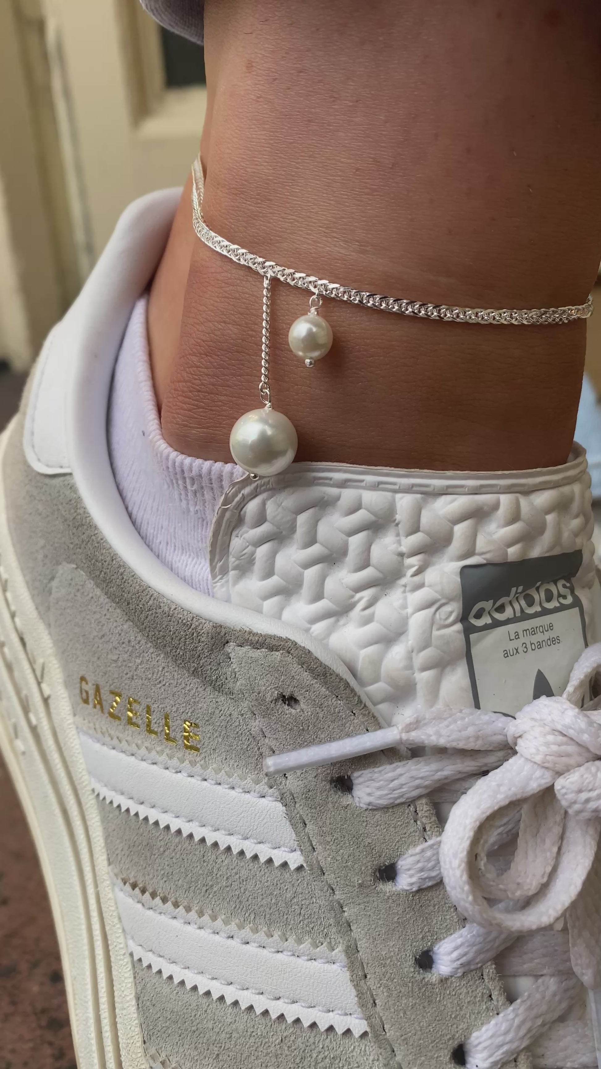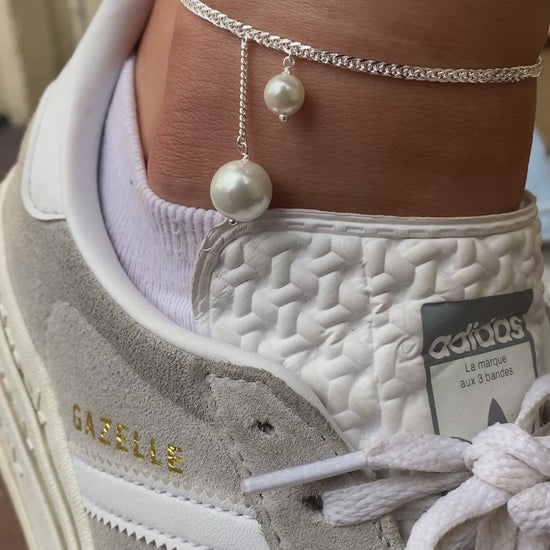 925 silver franco chain anklet with two shell pearls.
