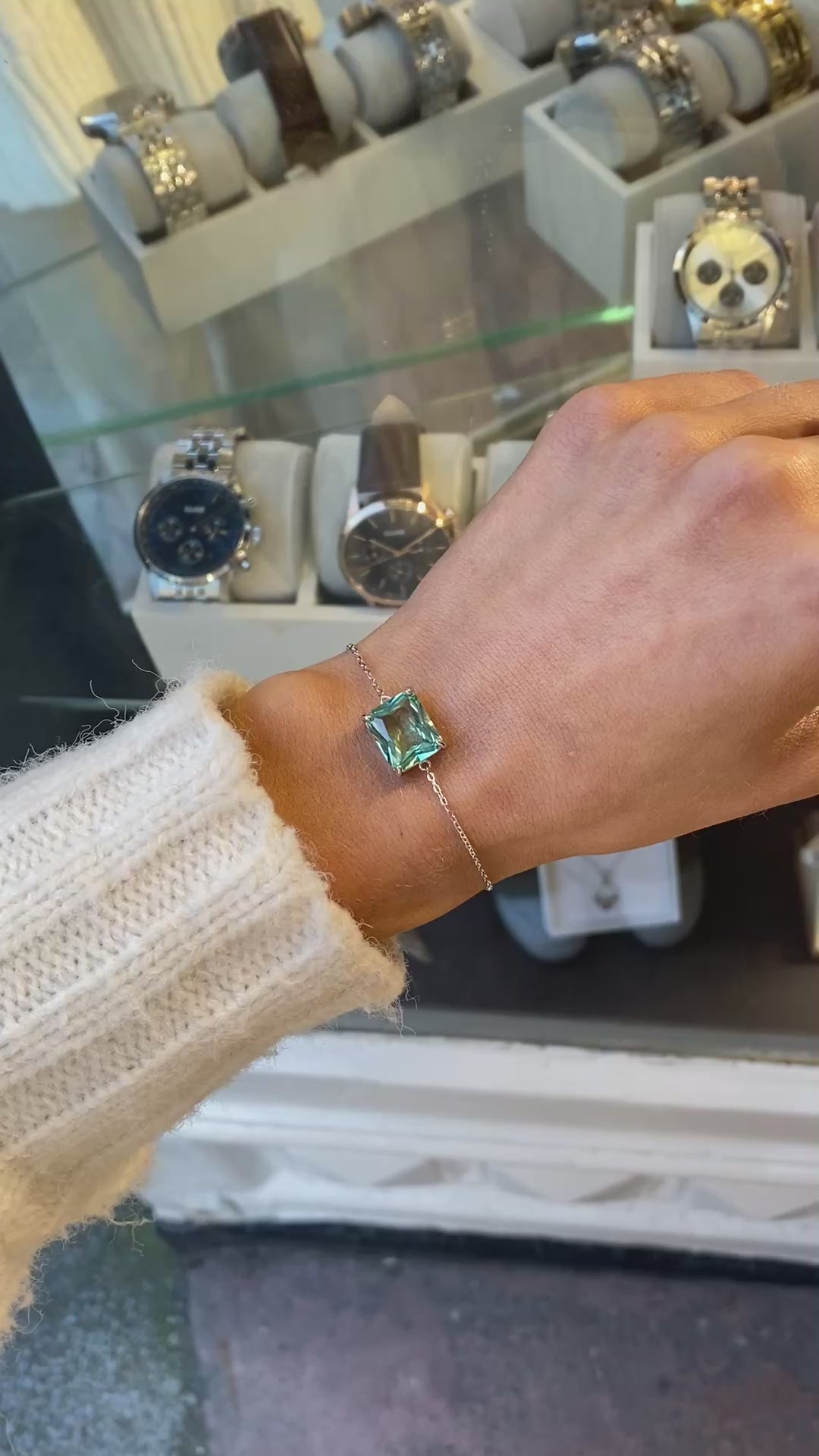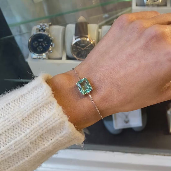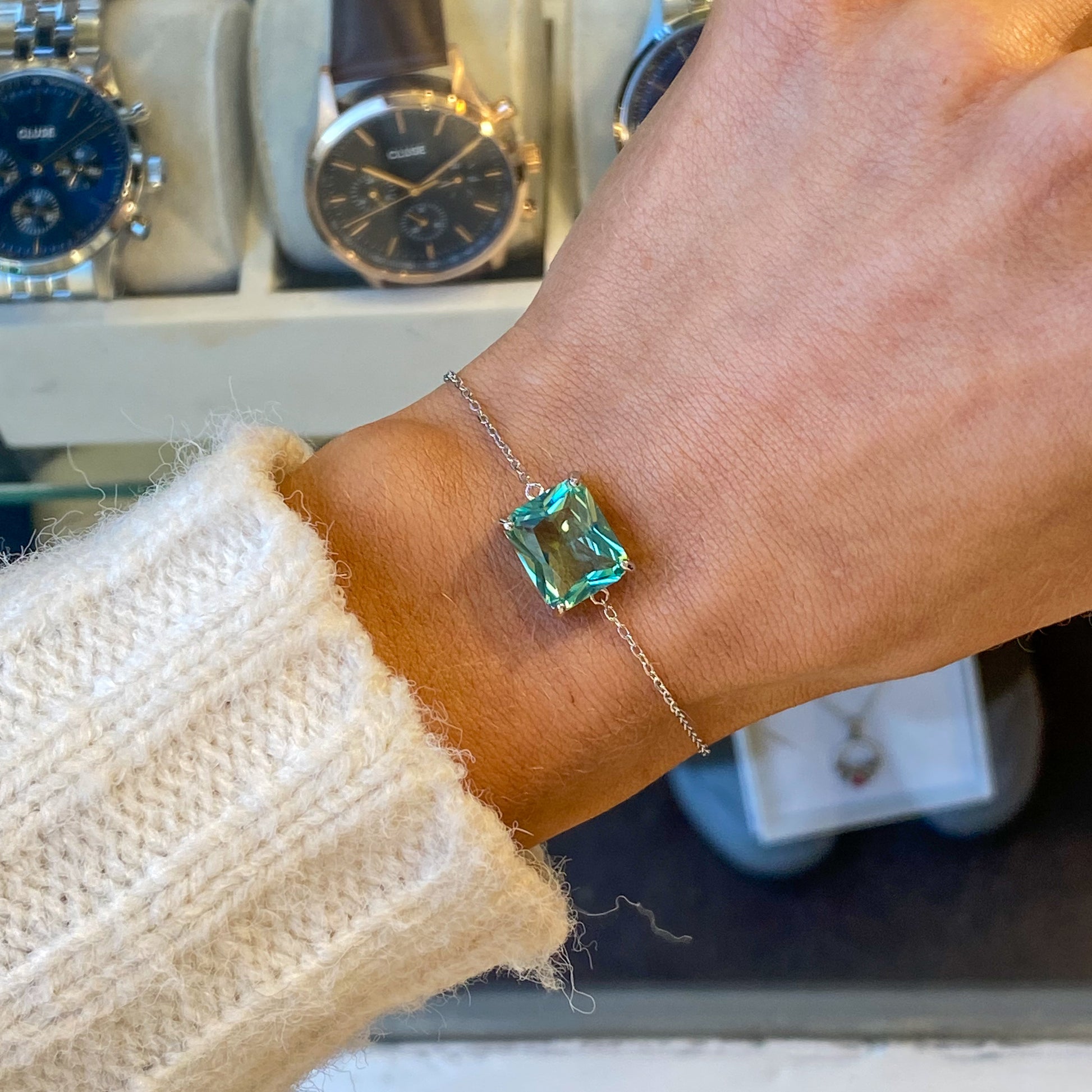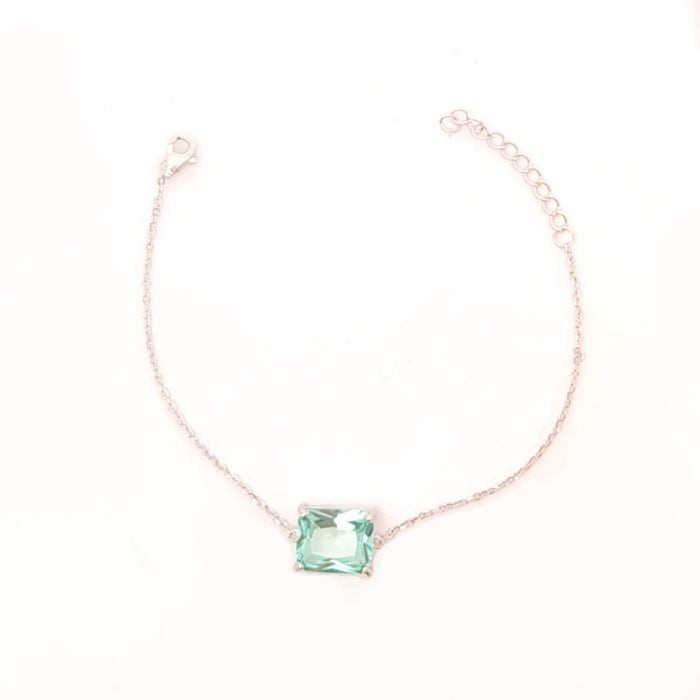 Silver Aqua CZ Bracelet | 925 Silver | 10x8mm CZ, 16+3cm