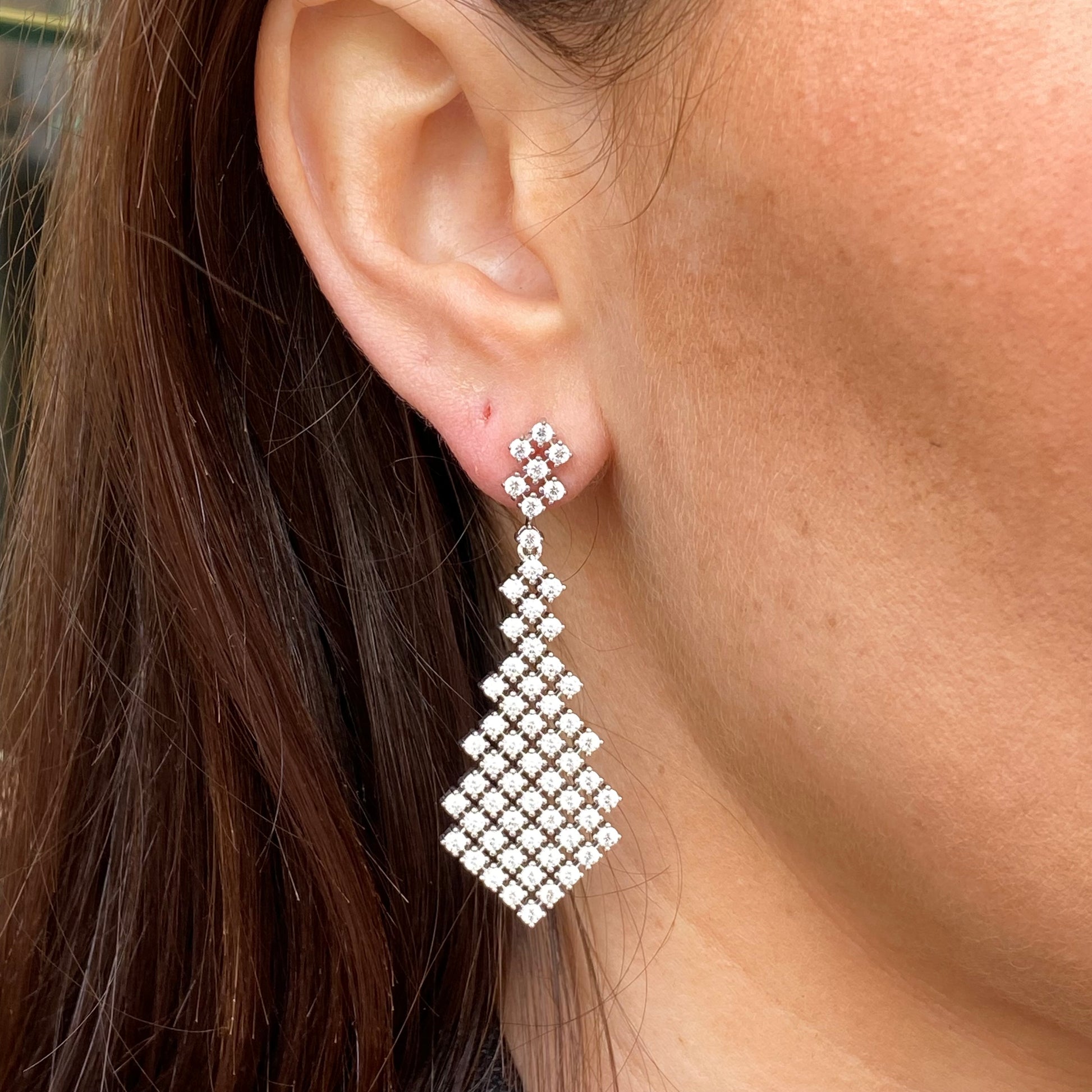Silver CZ Double Tennis Drop Earrings