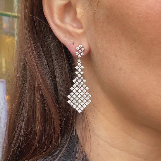 Silver CZ Double Tennis Drop Earrings | 925 Silver Rhodium Plated