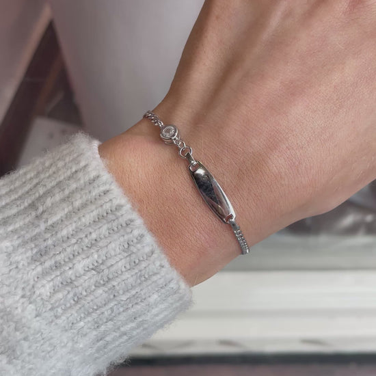 Silver CZ Identity Bracelet | 17+3cm, 925 Silver | This item can be engraved. Please add your desired engraving to the Cart Notes.