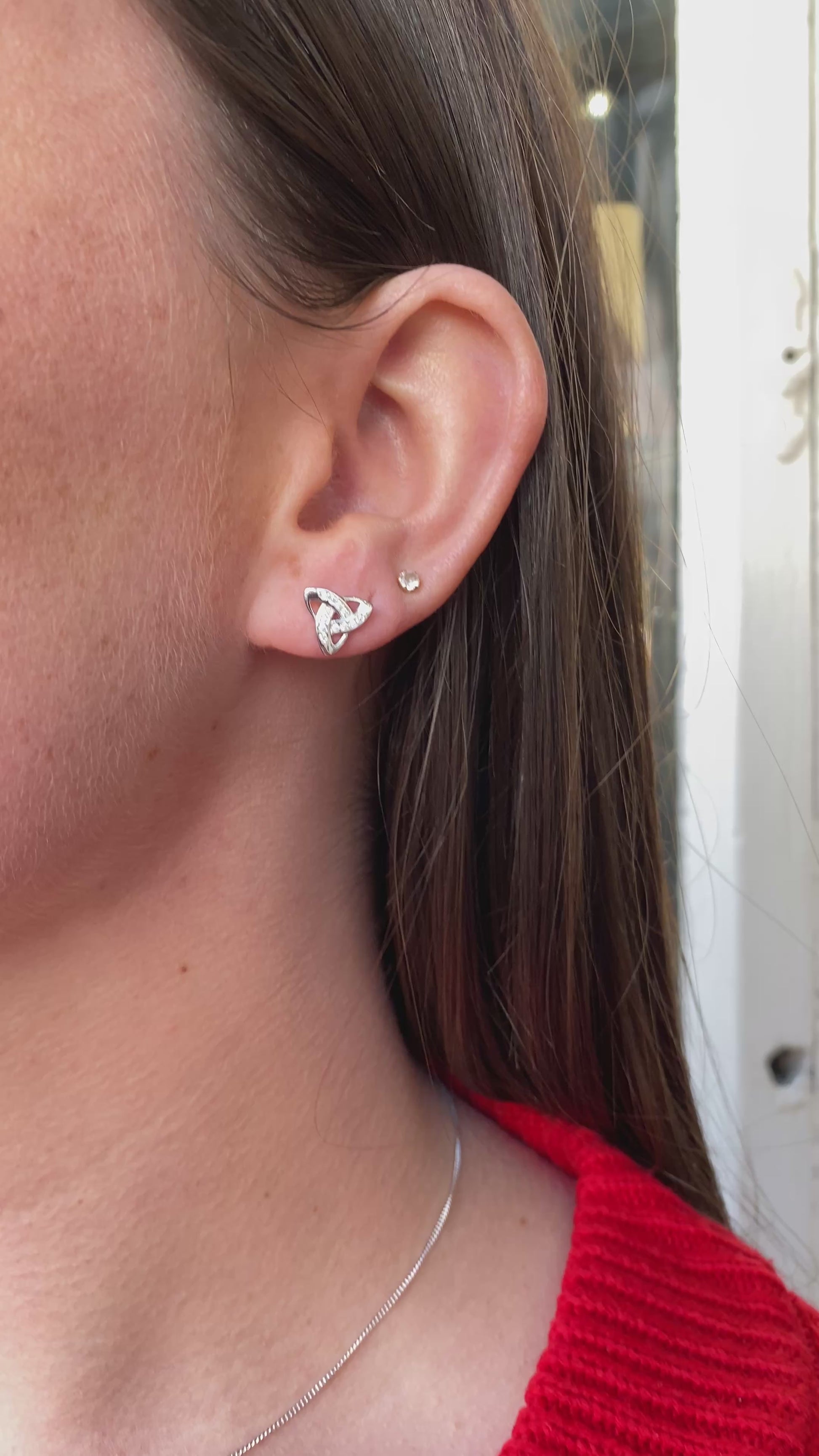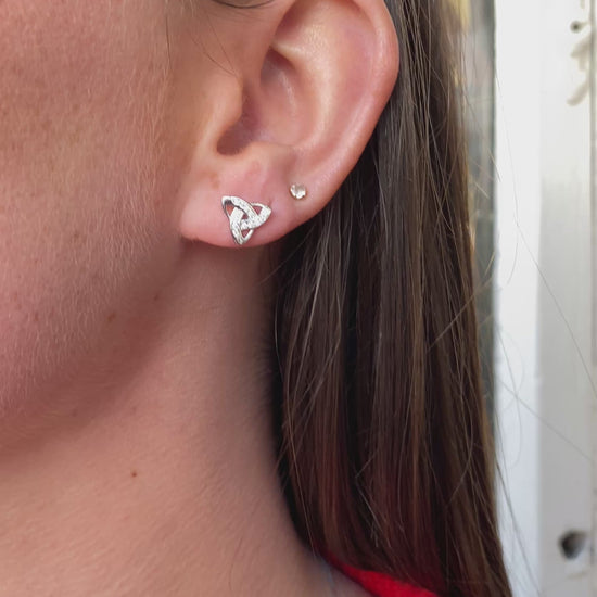 Silver CZ Trinity Knot Earring & Necklace Set | 925 Silver | 18" Chain