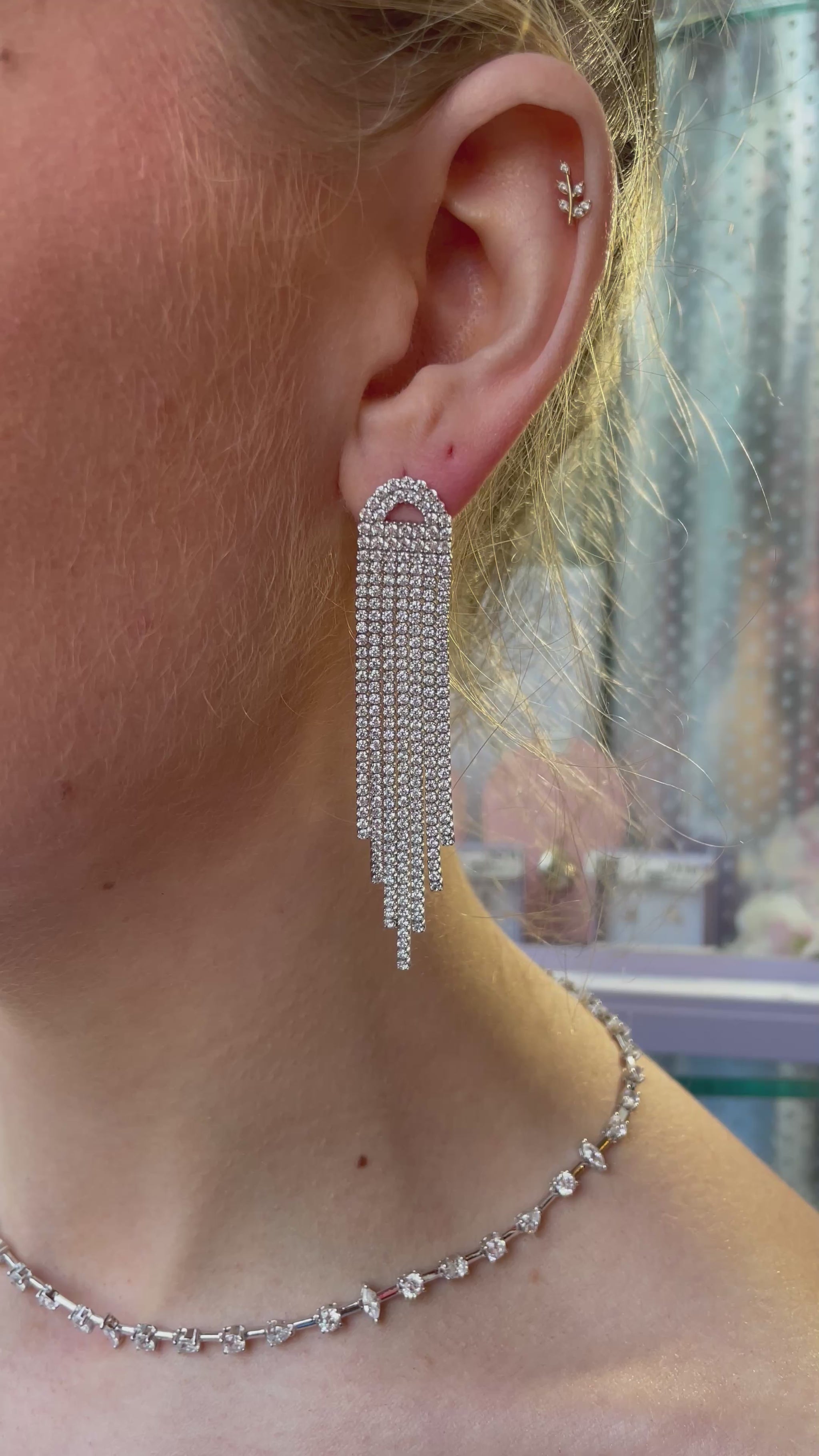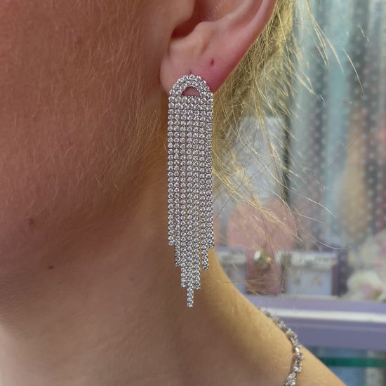 Silver Dramatic CZ Tennis Drop Earrings