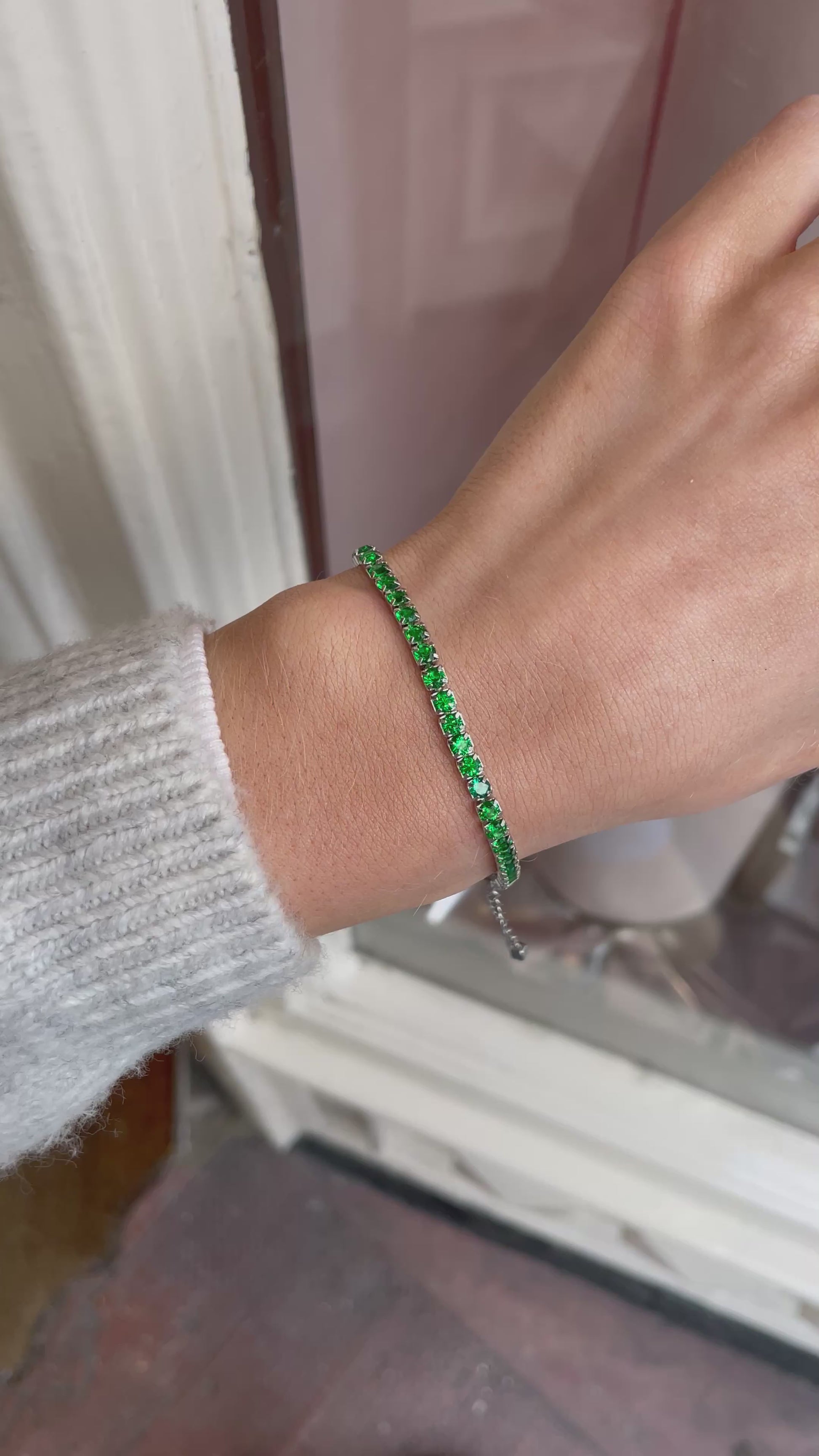 Silver Emerald Green 3mm CZ Tennis Bracelet | 16+4cm