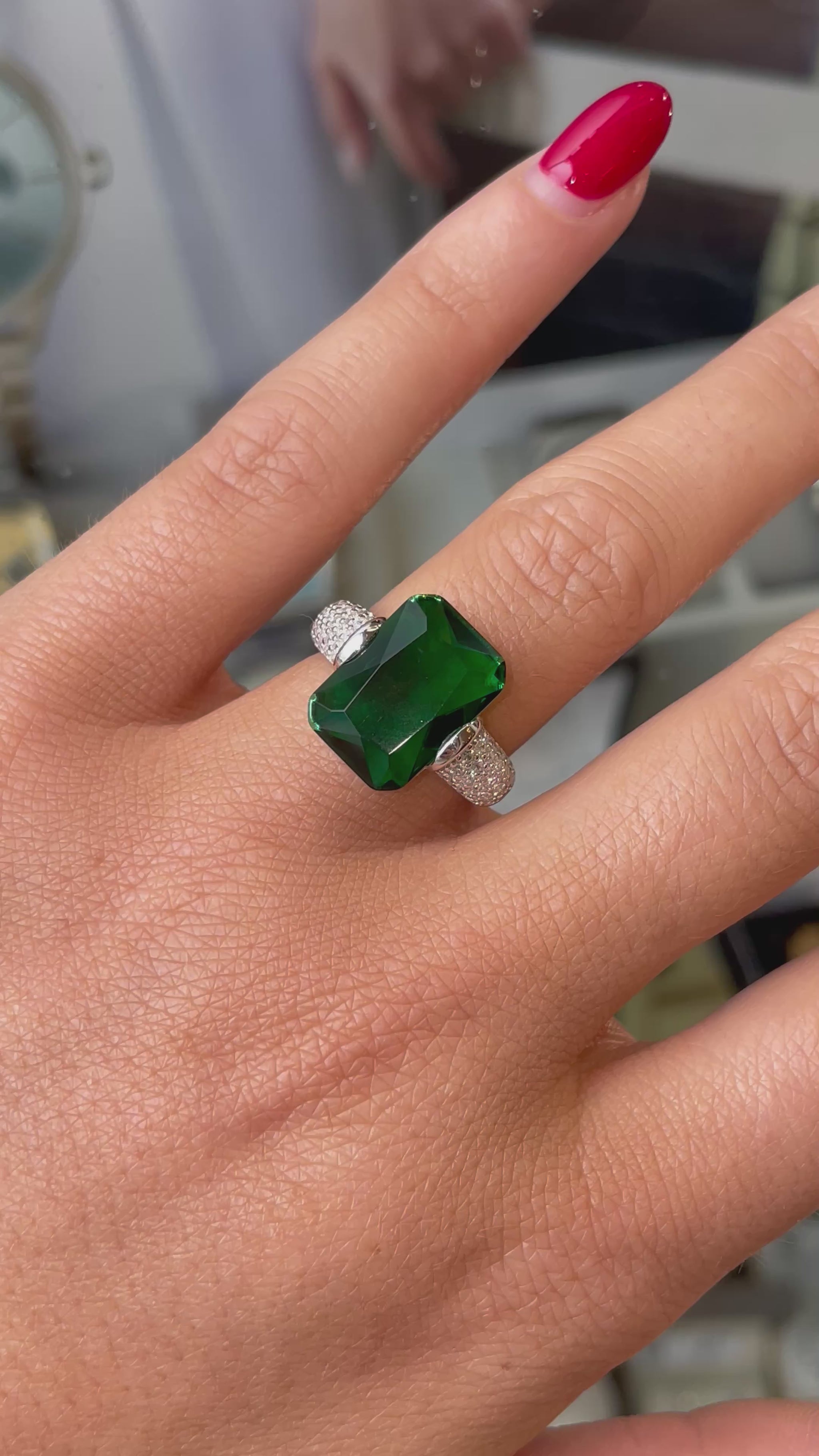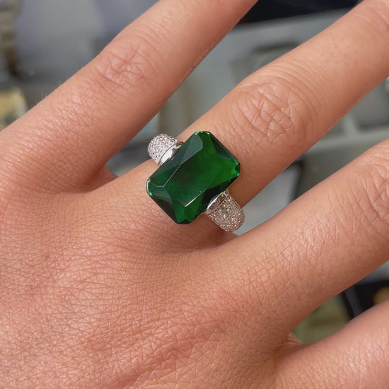Silver Emerald Green CZ Statement Solitaire Ring