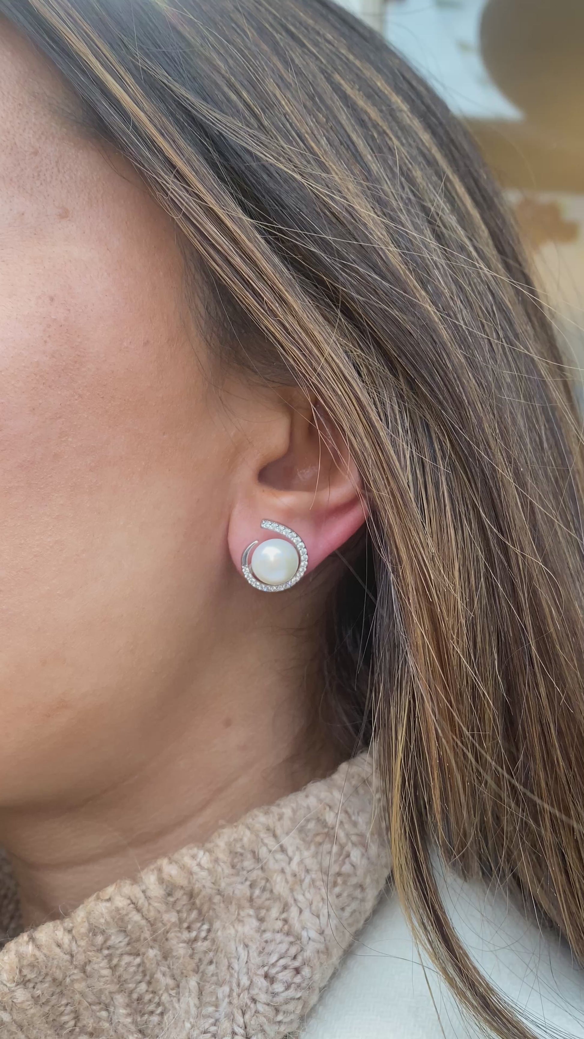 Silver Freshwater Pearl & CZ Stud Earrings