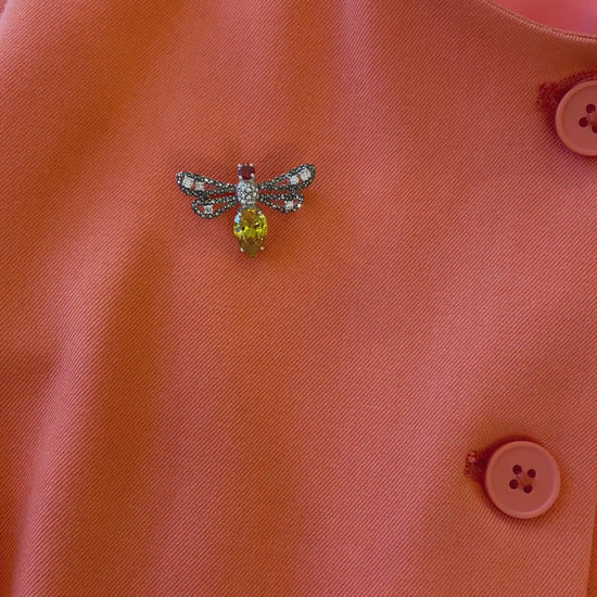 Featuring a garnet head, white cubic zirconia in the centre and on the wings, and a yellow cubic zirconia along the tail, this unique take on a classic piece is the perfect addition to any collection.