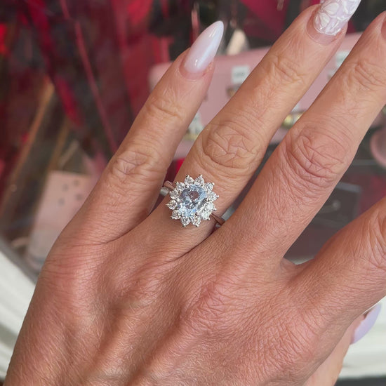 Silver Oval Diana Cluster Ring | Aqua Blue 7x9mm | 925 Silver