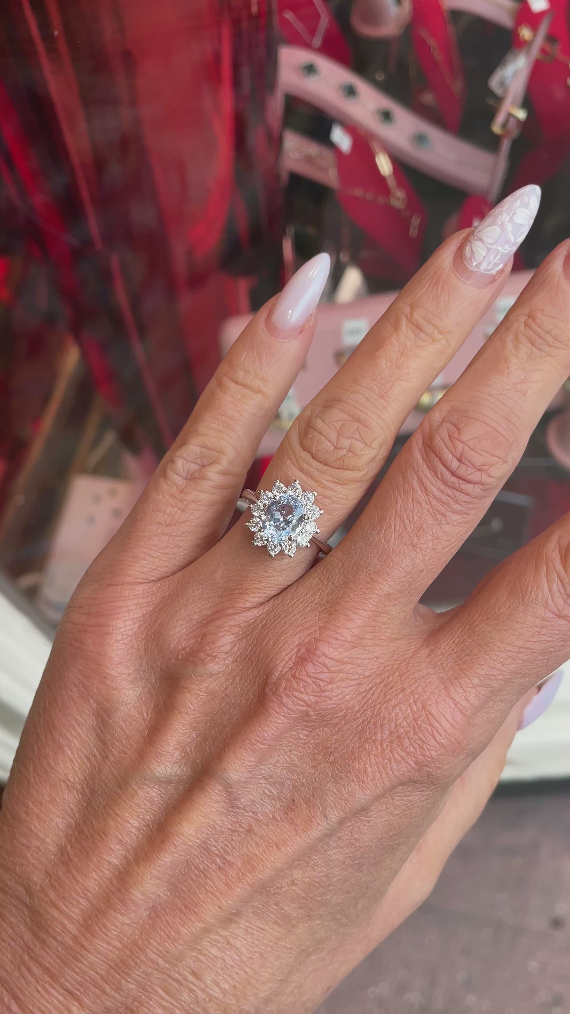 Silver Oval Diana Cluster Ring | Aqua Blue 7x9mm
