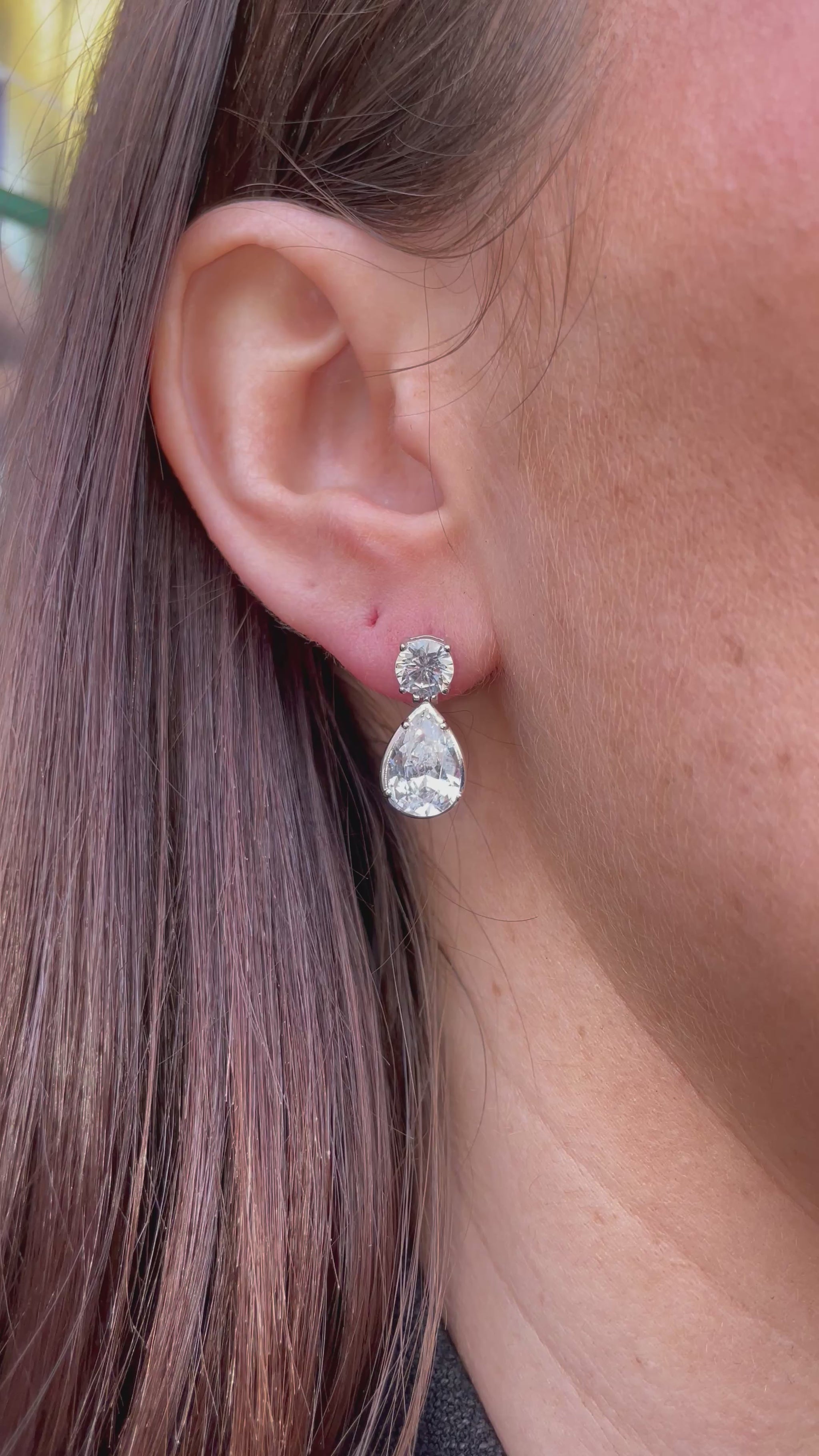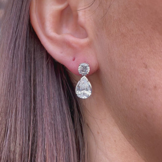 Silver Pear CZ Drop Earrings | 5.5mm & 7x10mm | 925 Silver Rhodium Plated