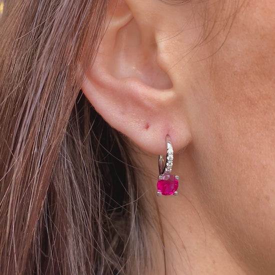 Silver Ruby Red CZ Hoop Earrings | German Wires | 925 Silver Rhodium Plated
