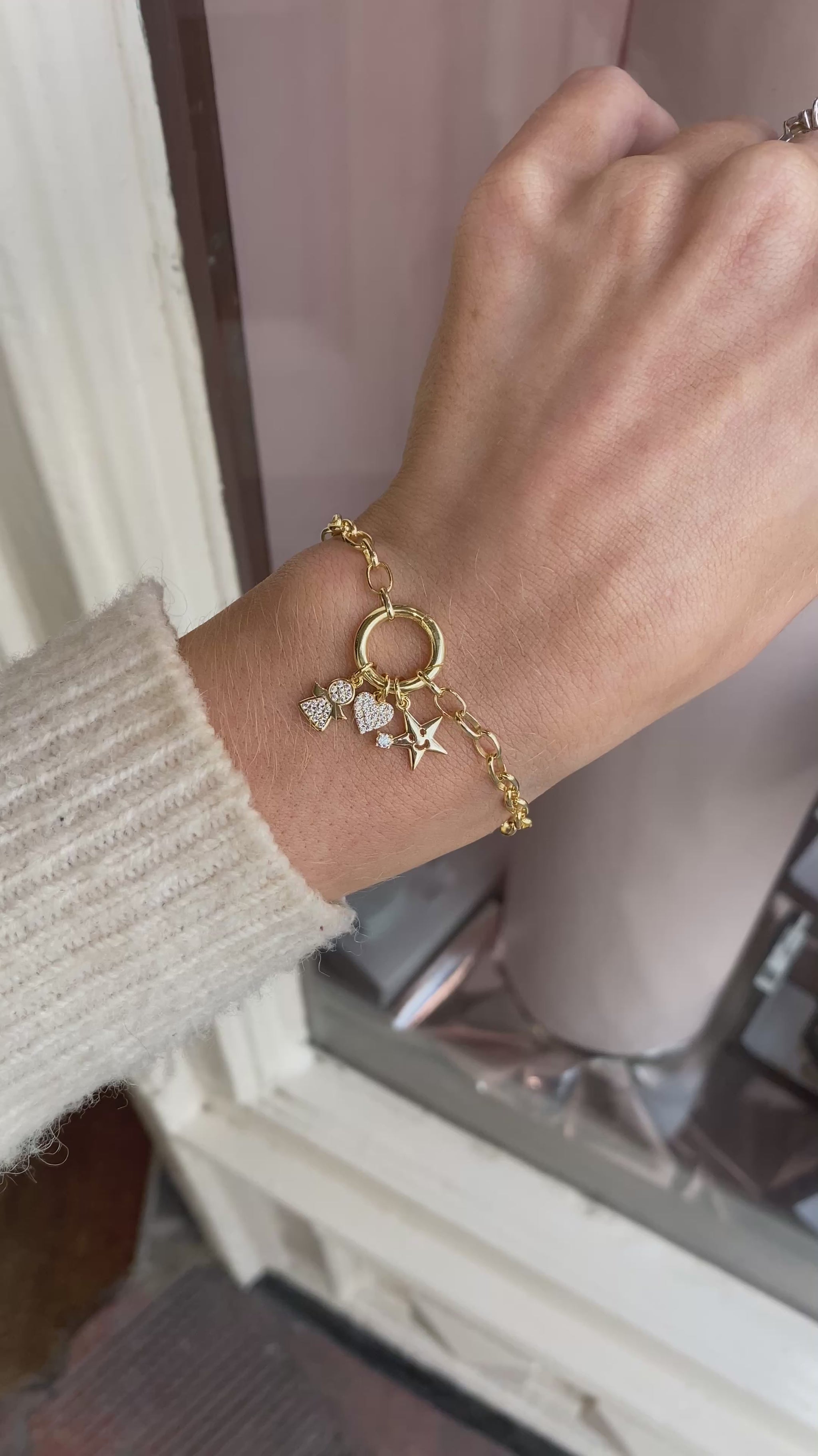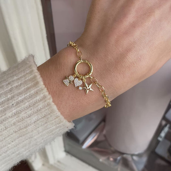 Sunshine Charming Bracelet | 17+3cm | Star, Heart & Angel | 925 Silver Gold Plated