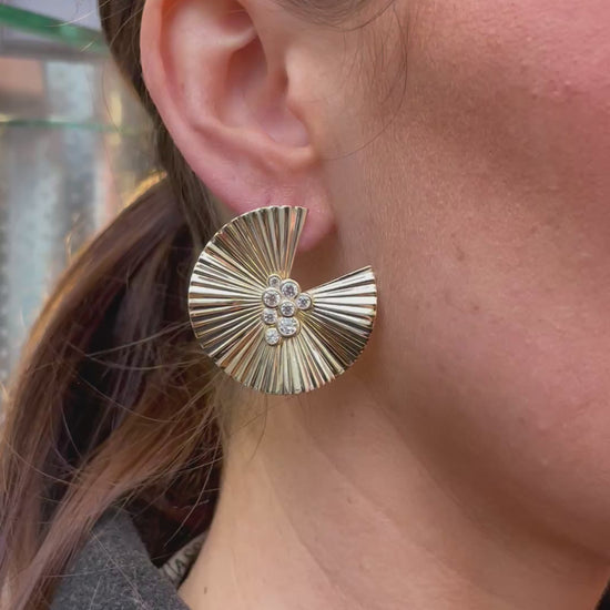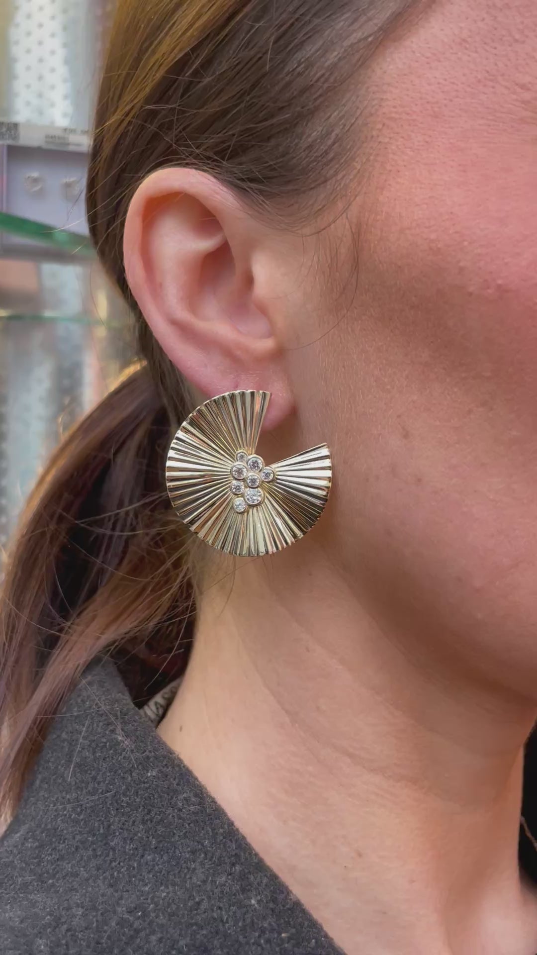Sunshine CZ Fan Stud Earrings | 925 Silver Gold Plated