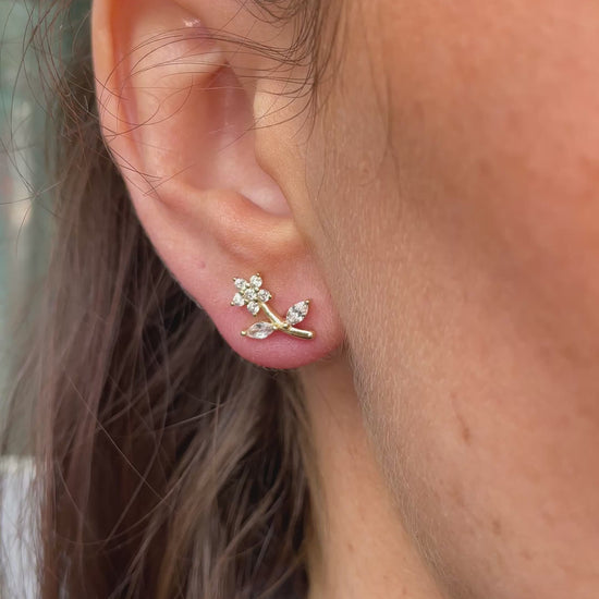 Sunshine CZ Flower Stud Earrings | 925 Silver Gold Plated