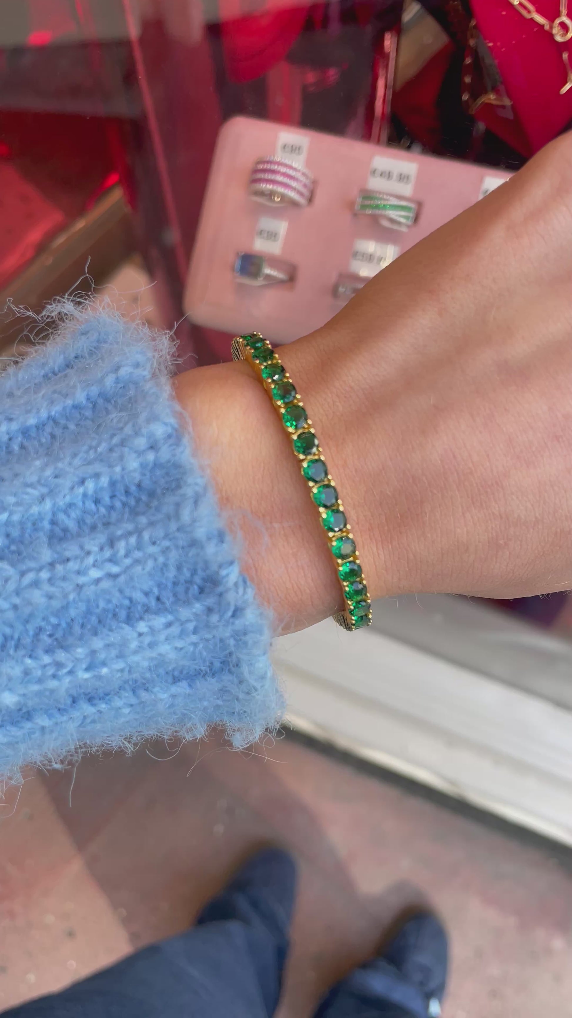 Sunshine CZ Tennis Bracelet | 4mm Green CZs | 925 Silver Gold Plated | 17+2cm
