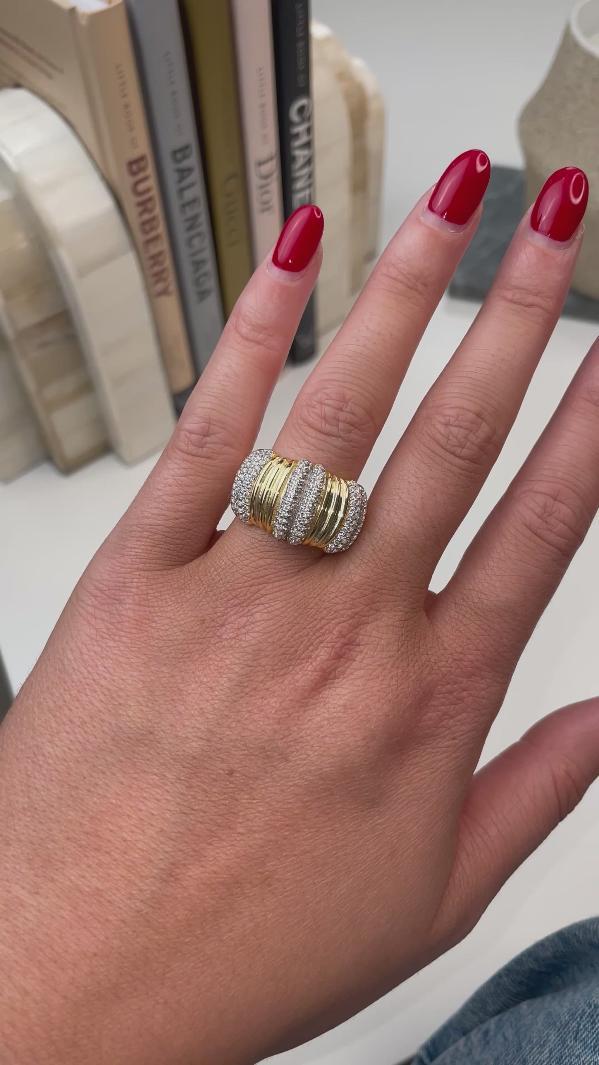 Sunshine CZ Trilogy Gadroon Ring | 925 Silver Gold Plated