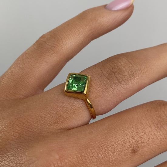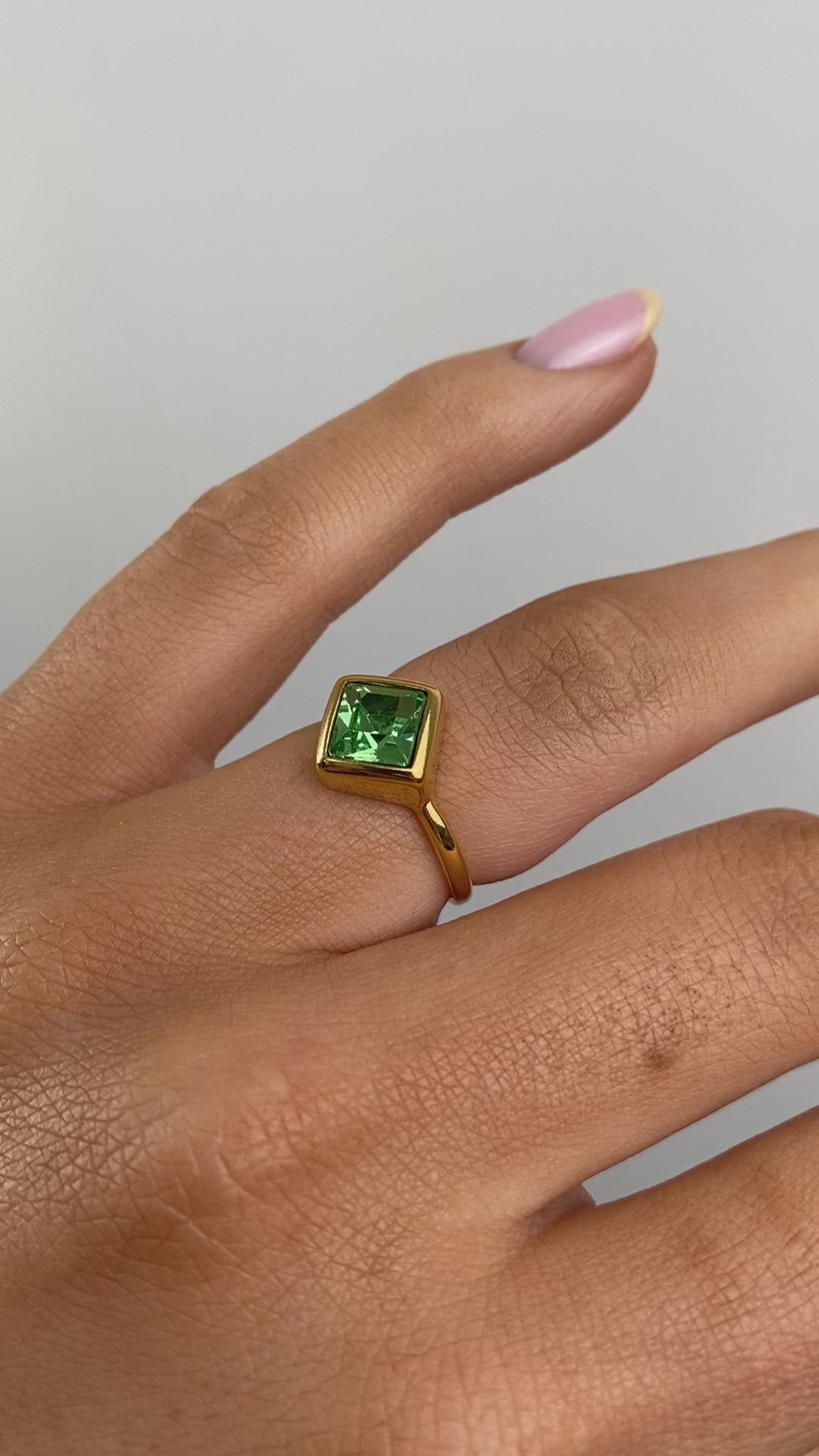 Focusing on how colours can have an impact on us with the crystal collection, the peridot green crystal within this kite ring represents an economical awareness. With the previous year we have experienced in mind, the positive green tones will be key this year. Crafted in yellow gold plated sterling silver, this ring features a polished finish and can be stacked with our other gold plated rings or paired with the matching earrings and pendant to complete the set.