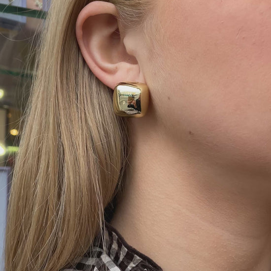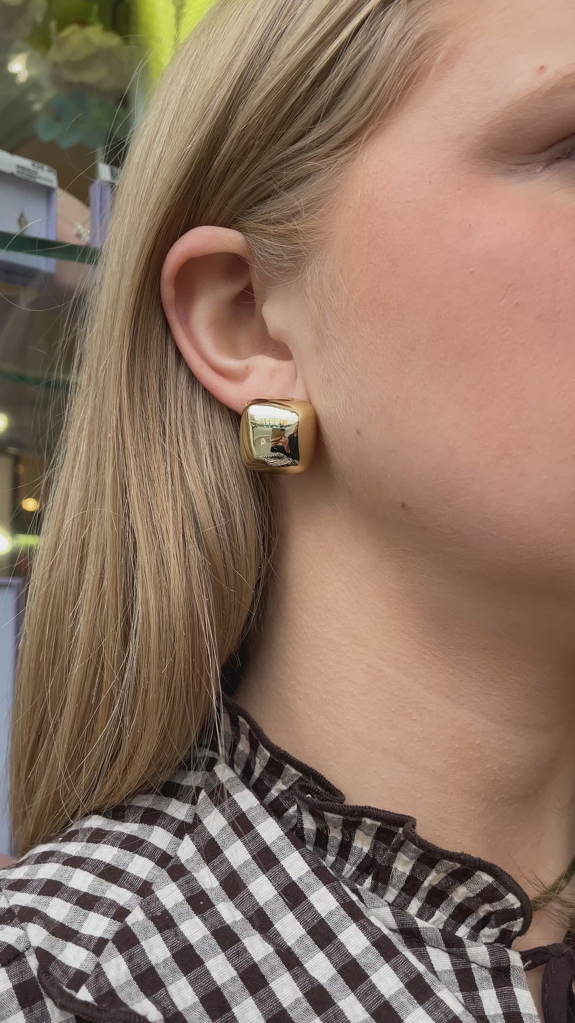Sunshine Puffed Square Stud Earrings | 925 Silver Gold Plated