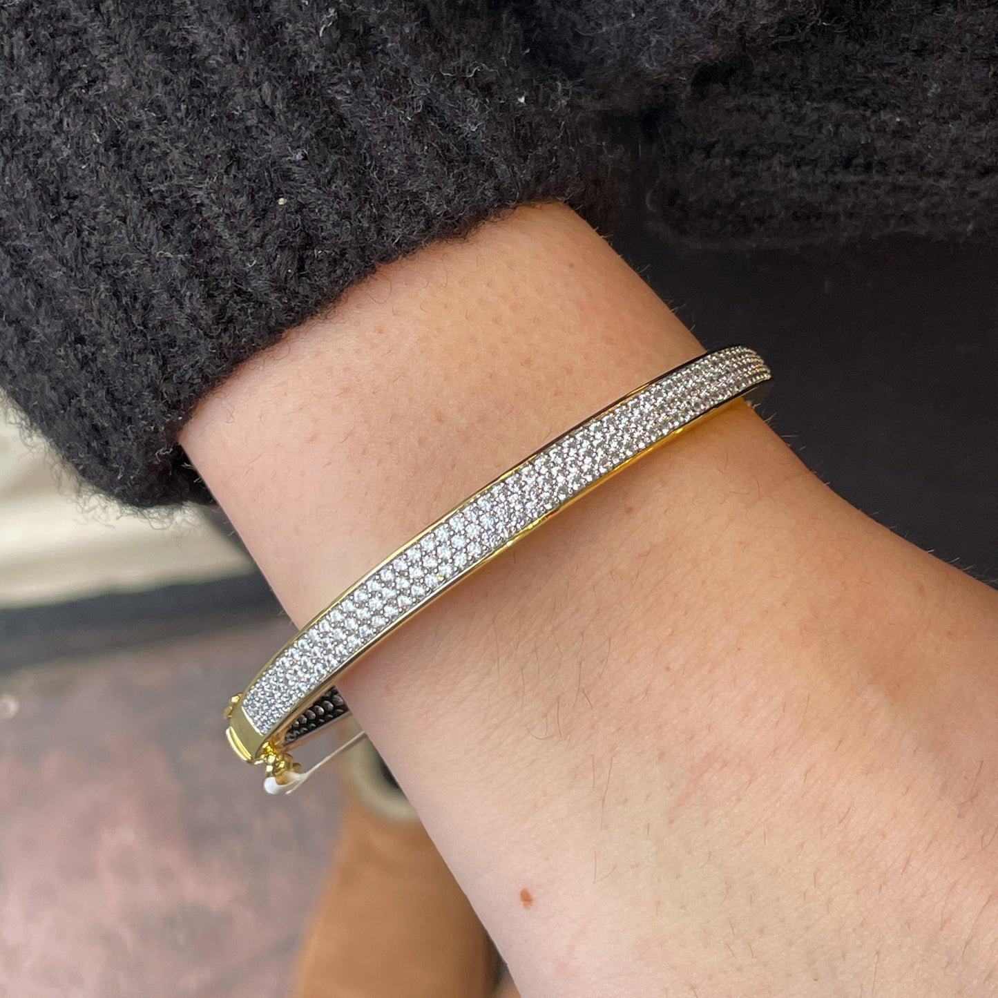 Sunshine Silver CZ Bangle | Square Edged - Gold & Rhodium Plated 925 Silver