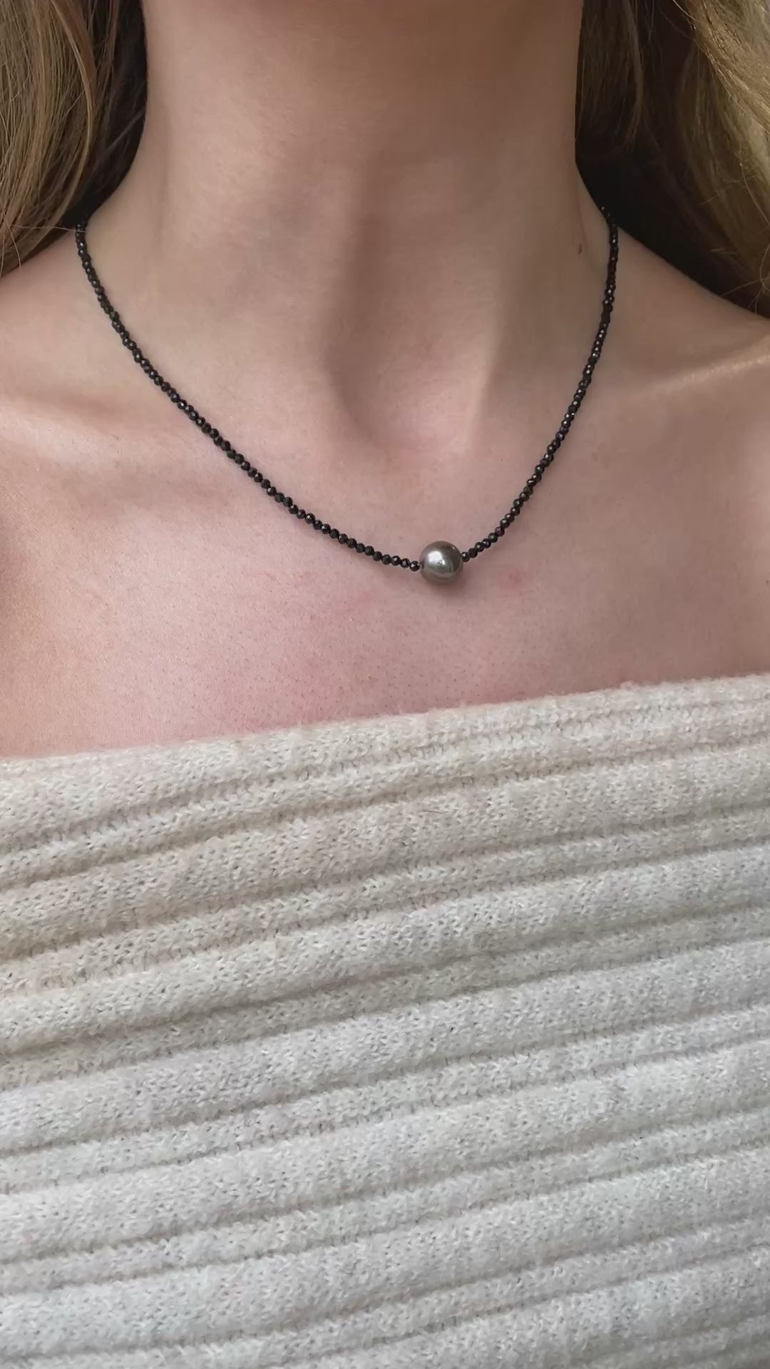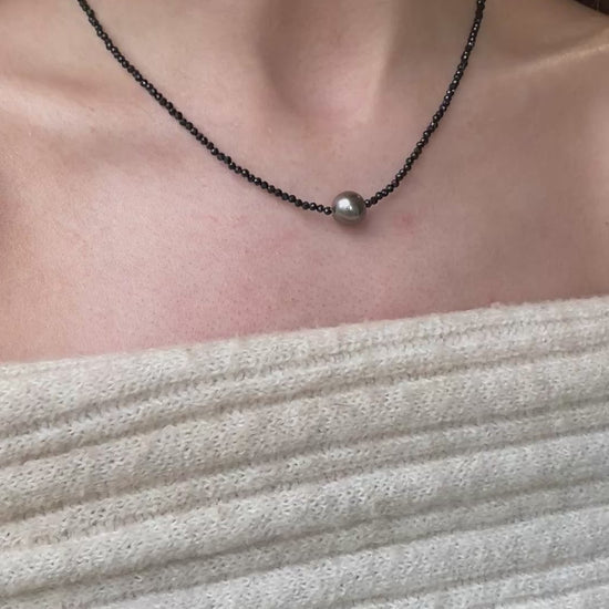 Steel Tahiti Pearl & Spinell Necklace
