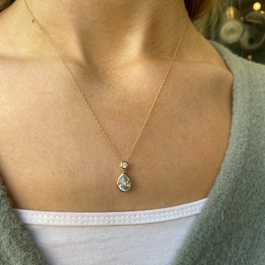 9ct Gold CZ Pear Rubover Drop Necklace