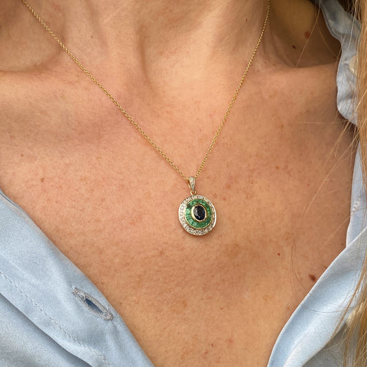 9ct Gold Sapphire, Emerald & Diamond Necklace
