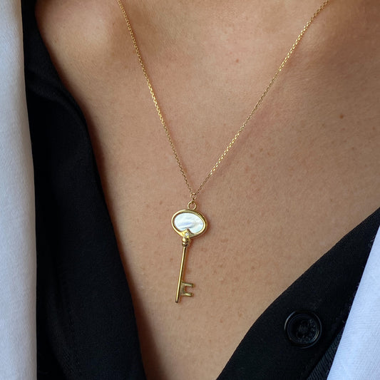 9ct Gold Mother of Pearl Key Necklace