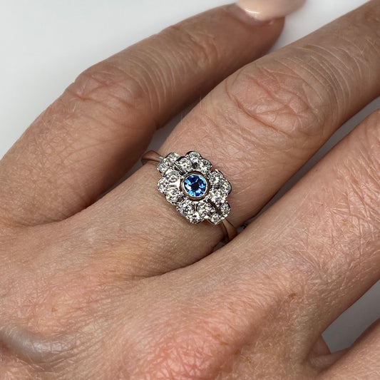 9ct White Gold Kashmiri Sapphire & Diamond Deco Ring