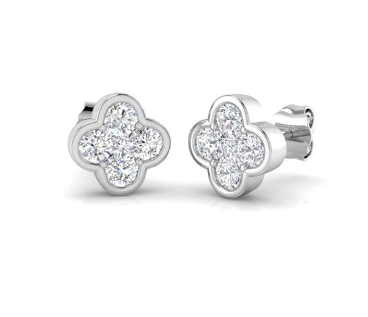 9ct White Gold Quatrefoil Diamond Stud Earrings | 0.86ct