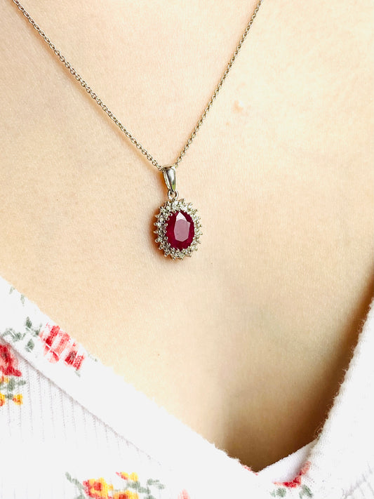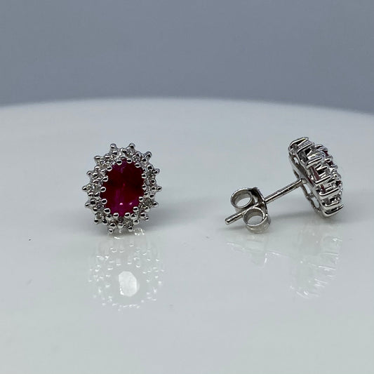 9ct White Gold Ruby & Diamond Cluster Earrings