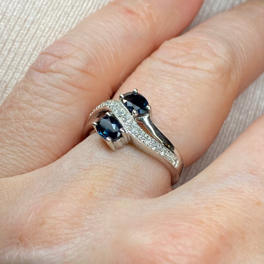 9ct White Gold Sapphire & Diamond Engagement Ring | 0.91ct + 0.27ct