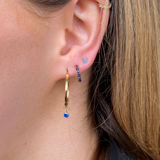 9ct Gold 10mm Baguette Hoop Earrings | Sapphire CZ