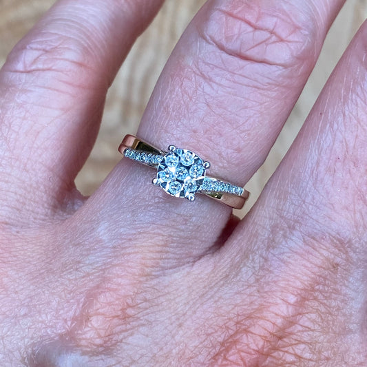 9ct Gold 0.20ct Solitaire Cluster Diamond Engagement Ring
