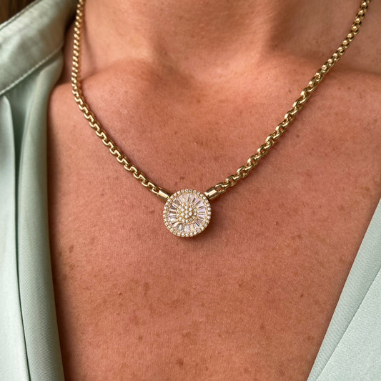 9ct Gold CZ Crescent Disc Necklace | 12mm